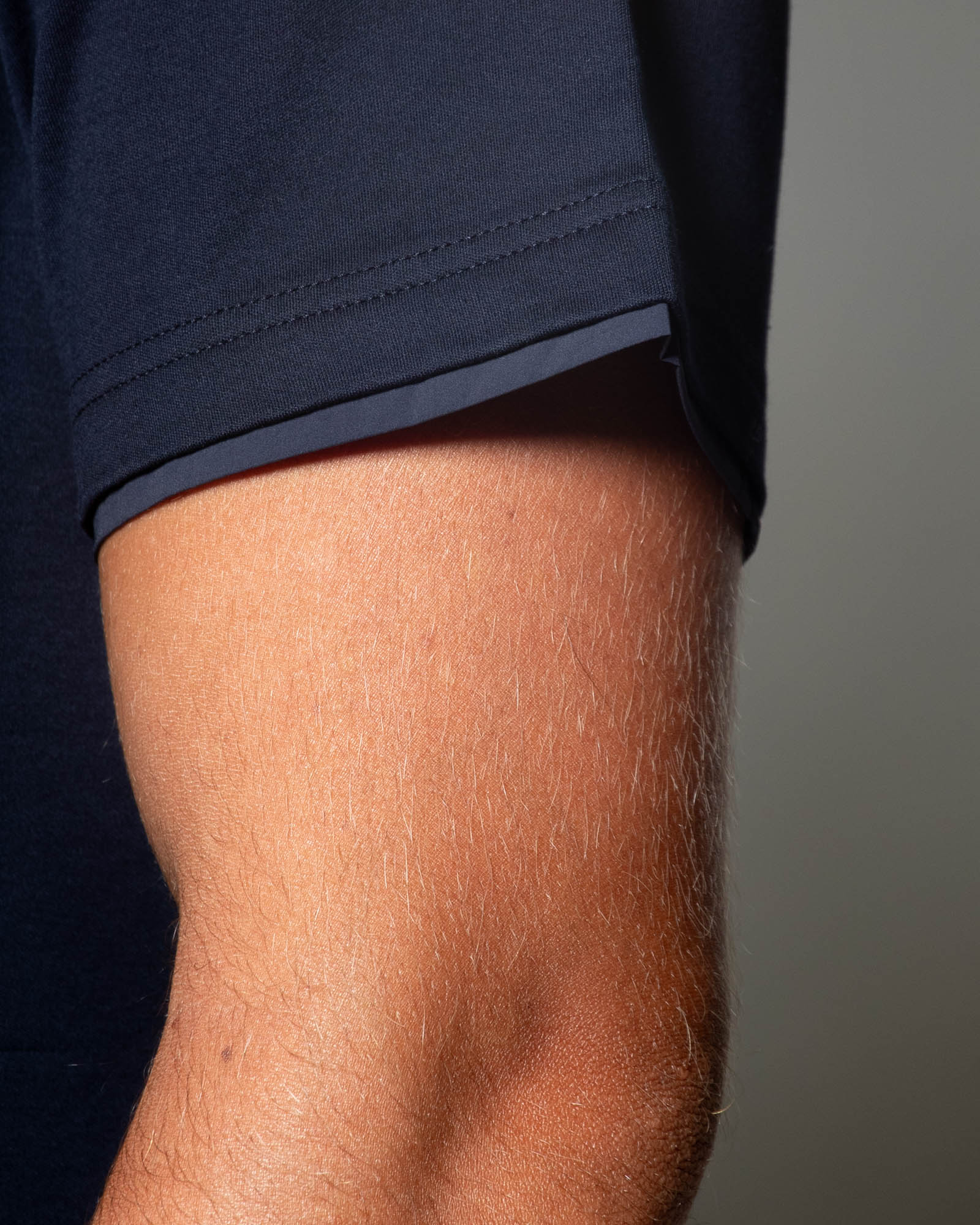 Un capo pensato per l’uomo che ricerca eleganza anche nei dettagli più semplici: la linea regolare e la finitura opaca riflettono la precisione e l’armonia del design Herno. Ideale come base per abbinamenti quotidiani o come elemento sofisticato sotto una giacca leggera.