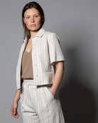 La costruzione con doppia pinces e vita leggermente alta richiama i codici della sartoria tradizionale, mentre il tessuto in jersey introduce comfort e naturalezza, tipici dello stile Max Mara. Perfetto da indossare in abbinamento alla giacca-camicia coordinata per un completo sofisticato e contemporaneo, oppure con capi essenziali per un’eleganza più disinvolta.