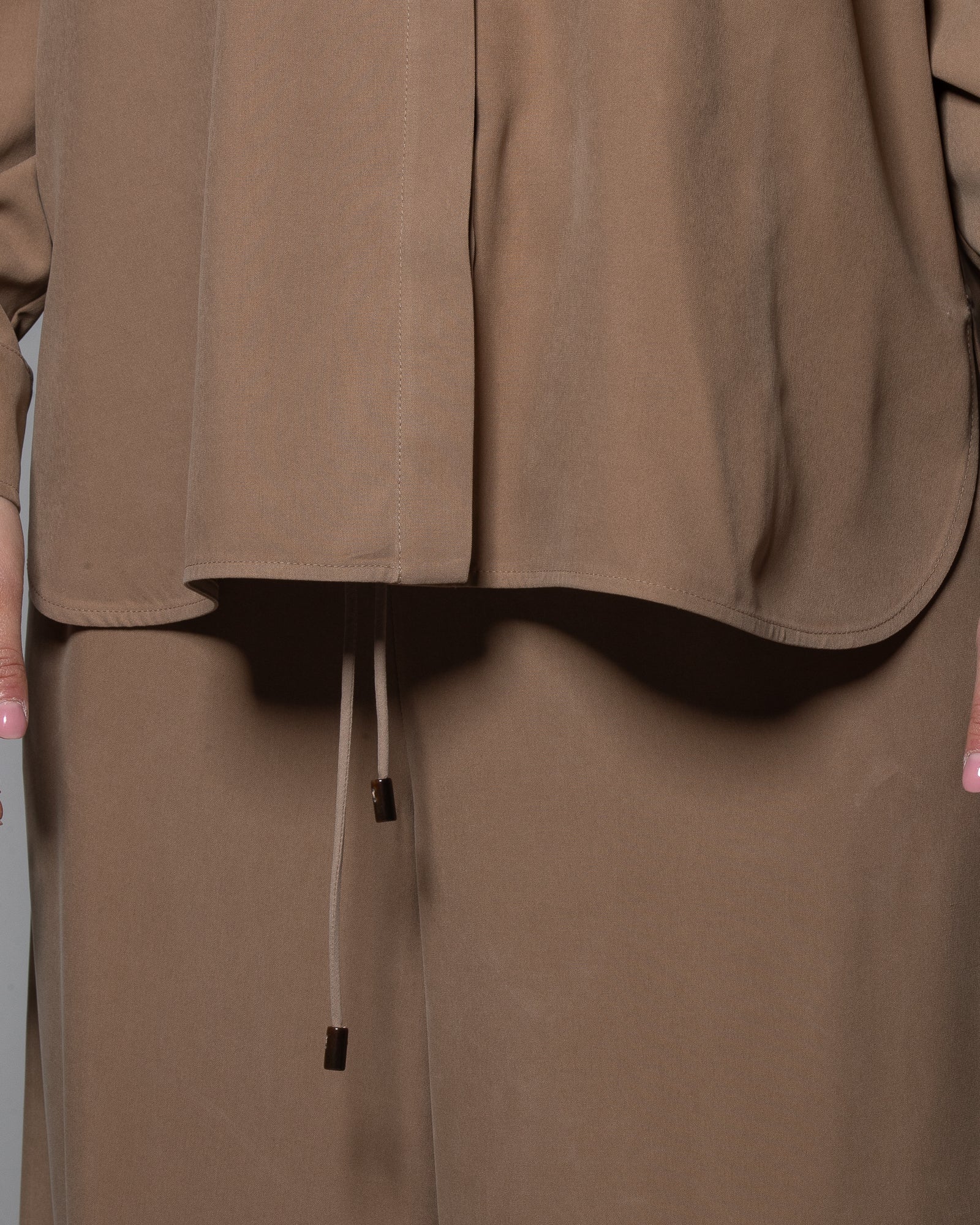 Espressione autentica dello stile Max Mara, questo modello unisce raffinatezza e comfort in una visione contemporanea del guardaroba femminile. La vita elasticizzata con coulisse introduce un tocco disinvolto, rendendolo perfetto sia per abbinamenti rilassati sia con camicia e top coordinati per un insieme sofisticato e coerente.