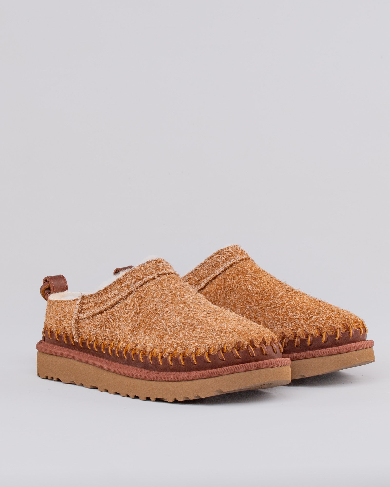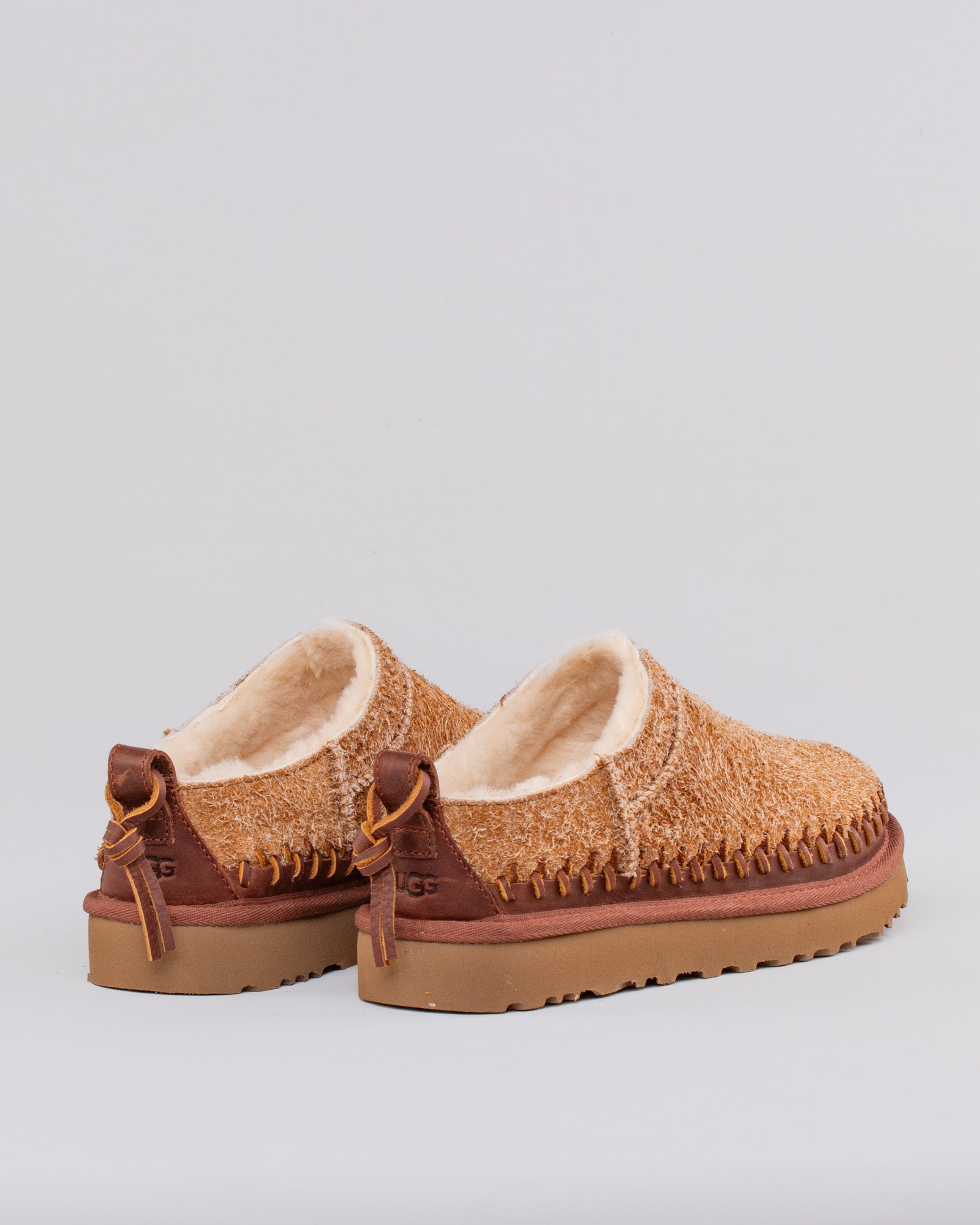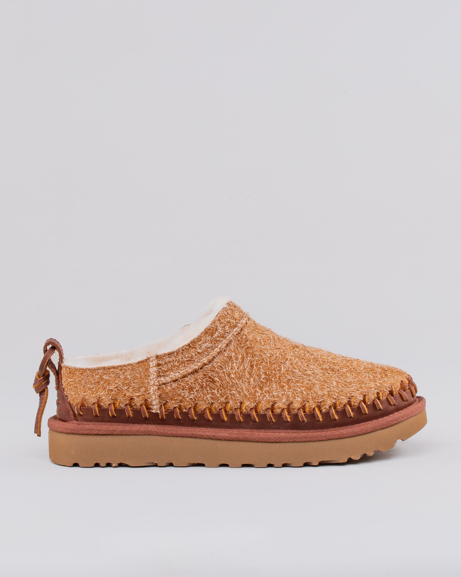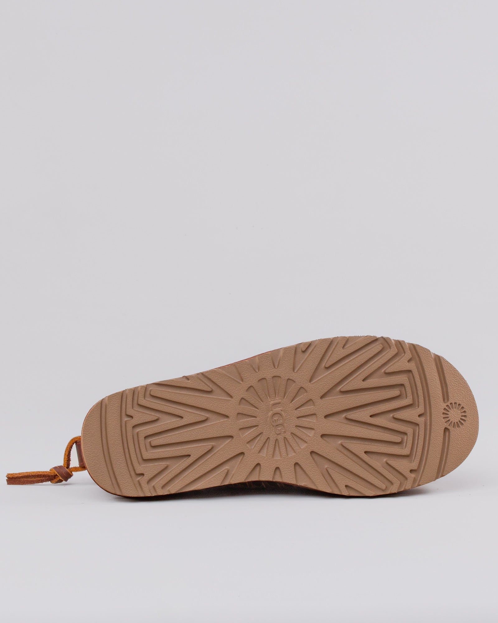 Il Micro Biarritz di UGG reinterpreta il celebre stivaletto Classic Boot con una silhouette più bassa e contemporanea. Realizzato in morbido suede naturale dall’effetto leggermente peloso, è foderato in soffice montone da 17mm per offrire una sensazione avvolgente e calda, perfetta da indossare con o senza calze. I dettagli decorativi come le cuciture a vista, le impunture Twin Seam e la nappina in pelle sul retro donano un tocco artigianale che celebra il DNA iconico del marchio. Completano il design la suola in EVA derivata dalla canna da zucchero, leggera e flessibile, che assicura sostegno e comfort ad ogni passo.