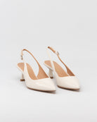 Essential and elegant, leather flap chanel heel with shiny patent finish.
