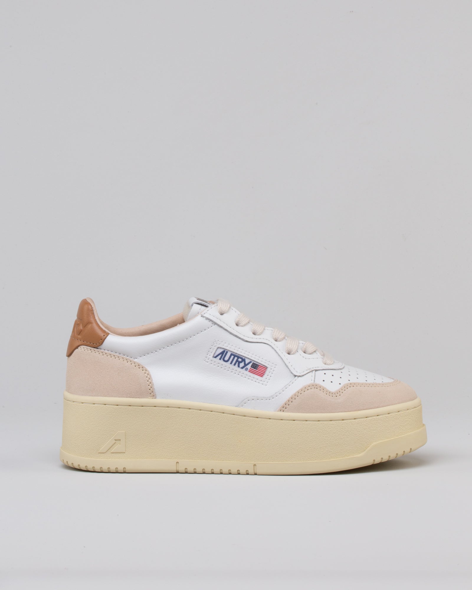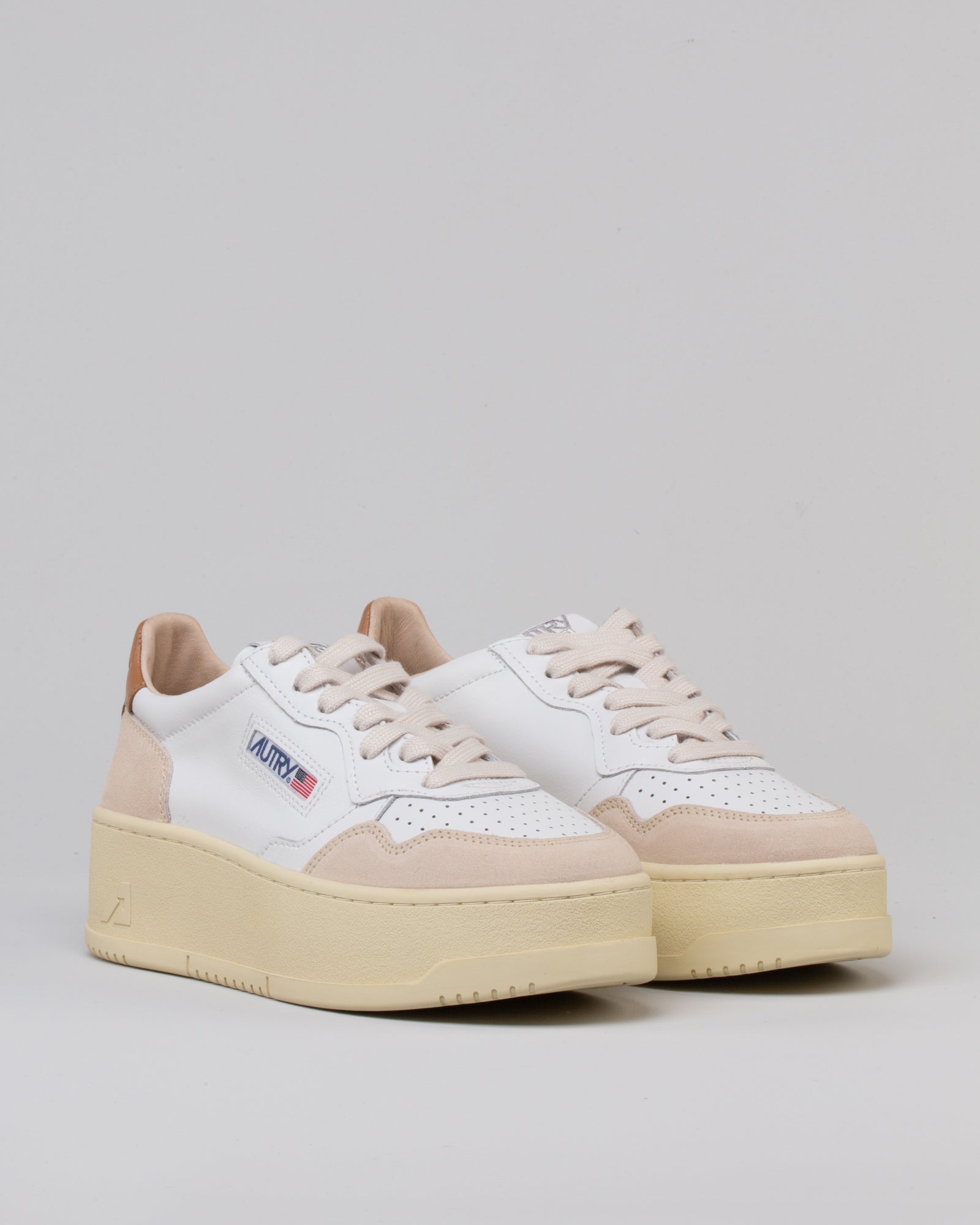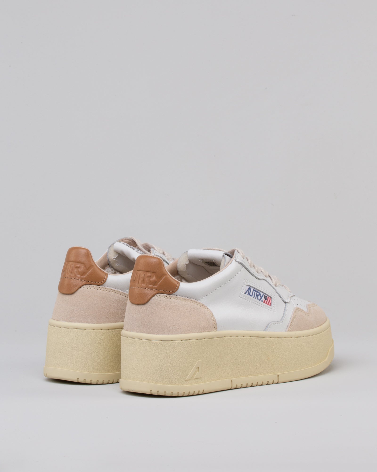 La Autry Medalist si reinventa con una nuova silhouette, elevata dalla suola platform che aggiunge un tocco di audacia al design. Questa versione rappresenta la fusione ideale tra l'ispirazione tennis anni '80 e uno spirito moderno, caratterizzata da volumi sorprendenti grazie alla suola chunky in gomma, non solo dona un'impronta distintiva alla scarpa, ma slancia la figura e garantisce un supporto sicuro in ogni passo, rendendola perfetta per chi cerca stile e comfort in un’unica calzatura.