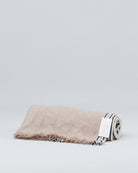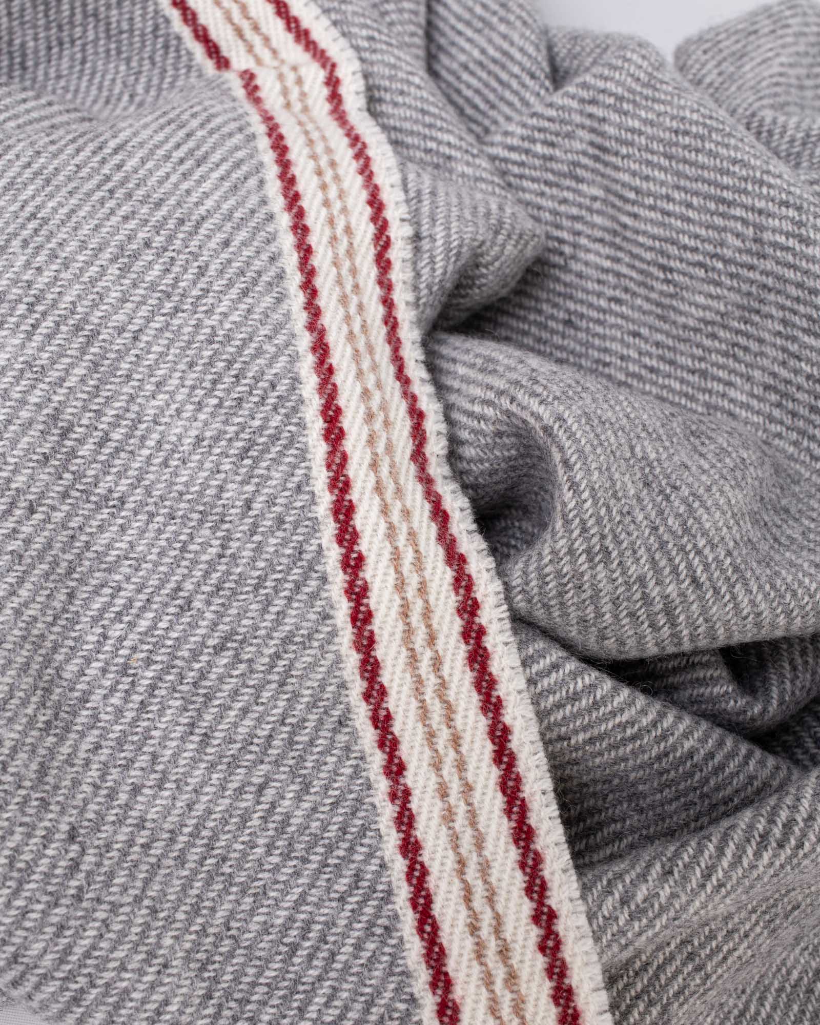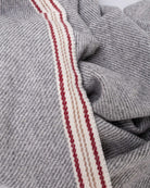 Il filato che più rappresenta Brunello Cucinelli valorizza questa preziosa sciarpa dalla texture corposa arricchita da una elegante fantasia cimosa lungo i bordi.