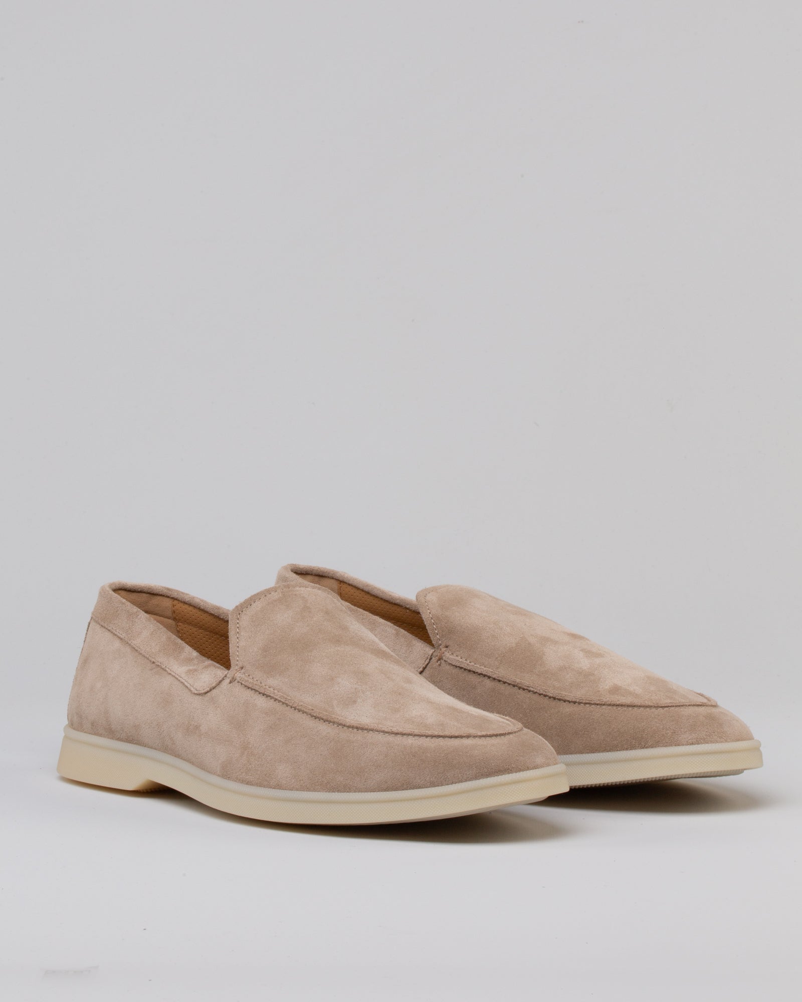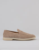 Il suede morbidissimo accarezza il piede con la sua texture vellutata e luminosa, mentre la suola in gomma ultra flessibile garantisce una camminata naturale, leggera, fluida. Perfetta con pantaloni cropped, chino o denim chiaro, è la scelta ideale per chi cerca un'eleganza rilassata ma impeccabile.