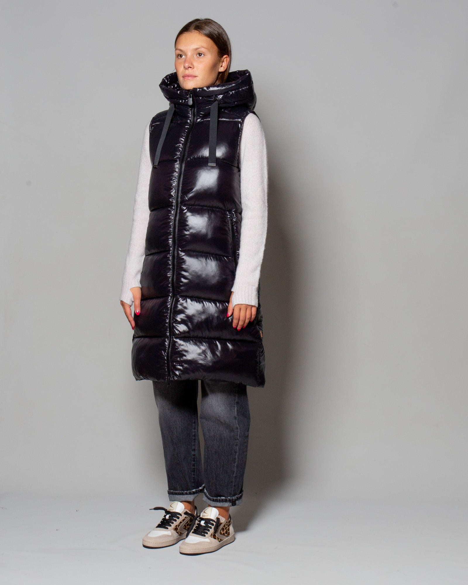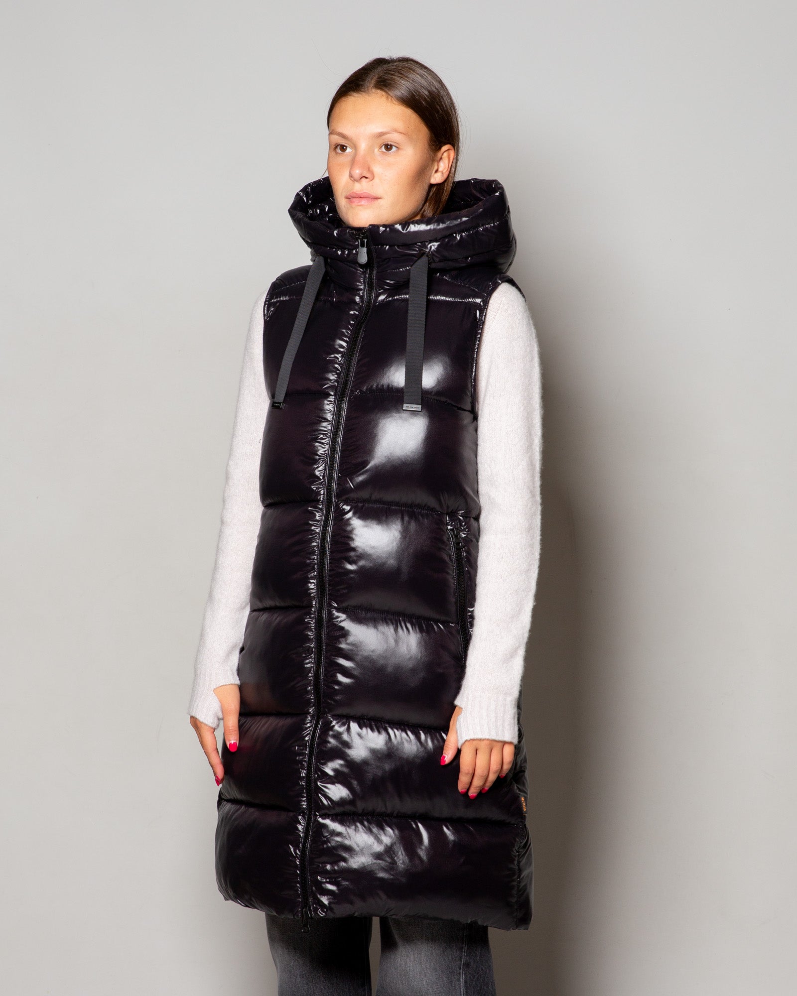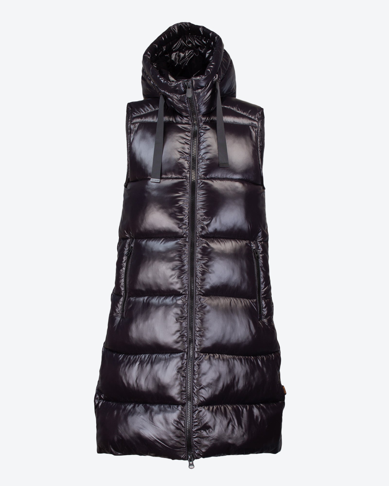 Sfoggia un look urban e moderno con questo piumino Save the Duck smanicato realizzato in nylon dalla finitura gloss. Le cerniere bold tono su tono e il logo patch sul cappuccio completano la linea.