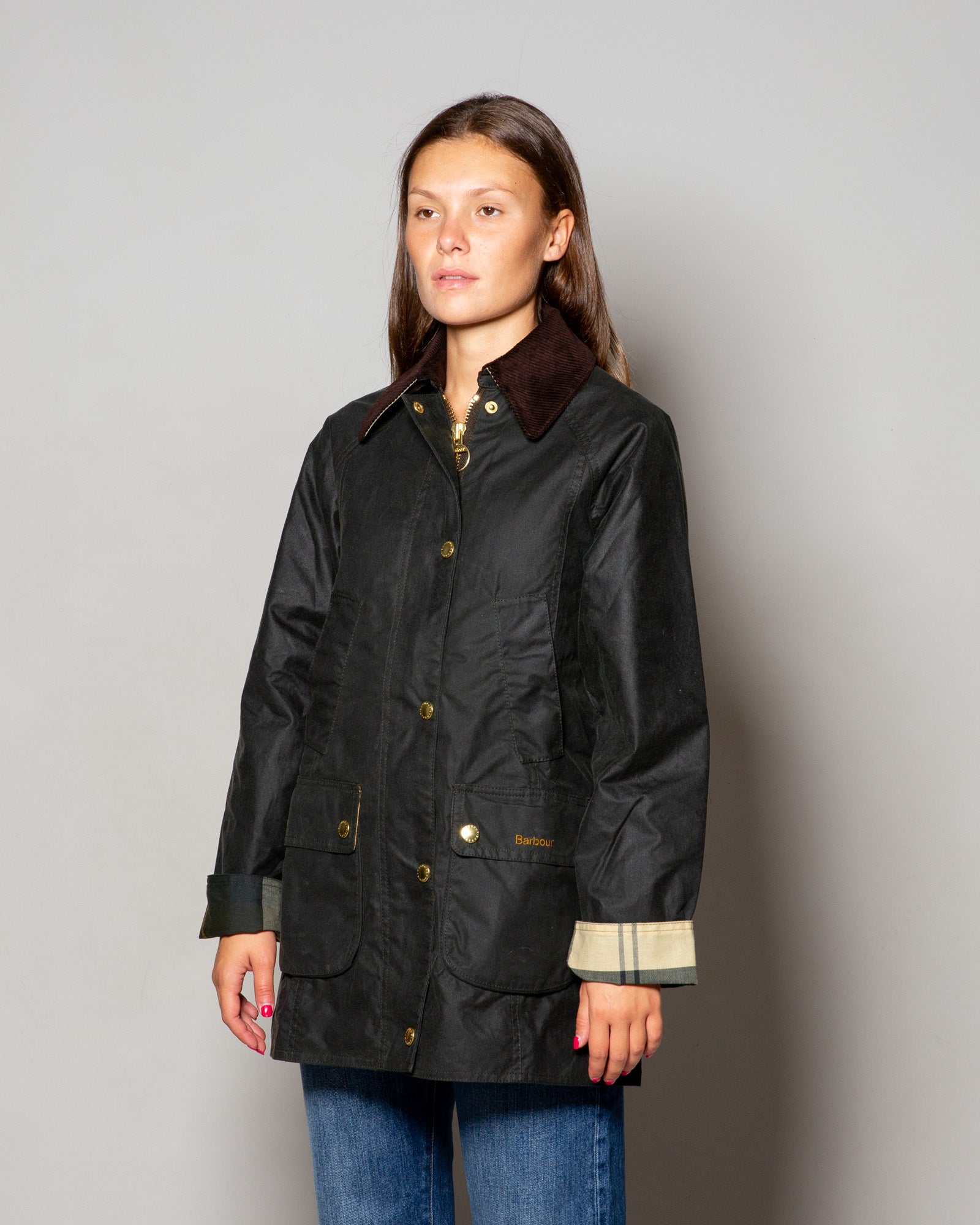La giacca Barbour Modern Beadnell riprende lo spirito del celebre modello Bedale, adattandolo con una vestibilità regolare e dettagli pensati per il guardaroba contemporaneo. Il cotone cerato garantisce resistenza e protezione, mentre il maxi colletto in velluto a coste sottili e i bottoni a pressione dorati donano un carattere elegante e femminile. Gli spacchi posteriori con bottoni completano un capo che fonde funzionalità e stile, fedele al DNA Barbour ma aggiornato nelle proporzioni.