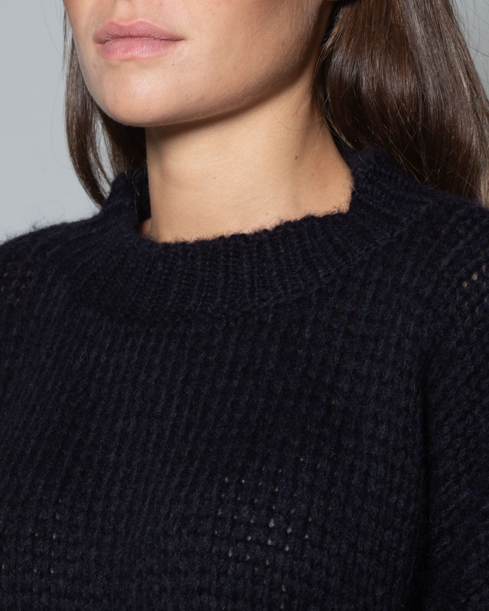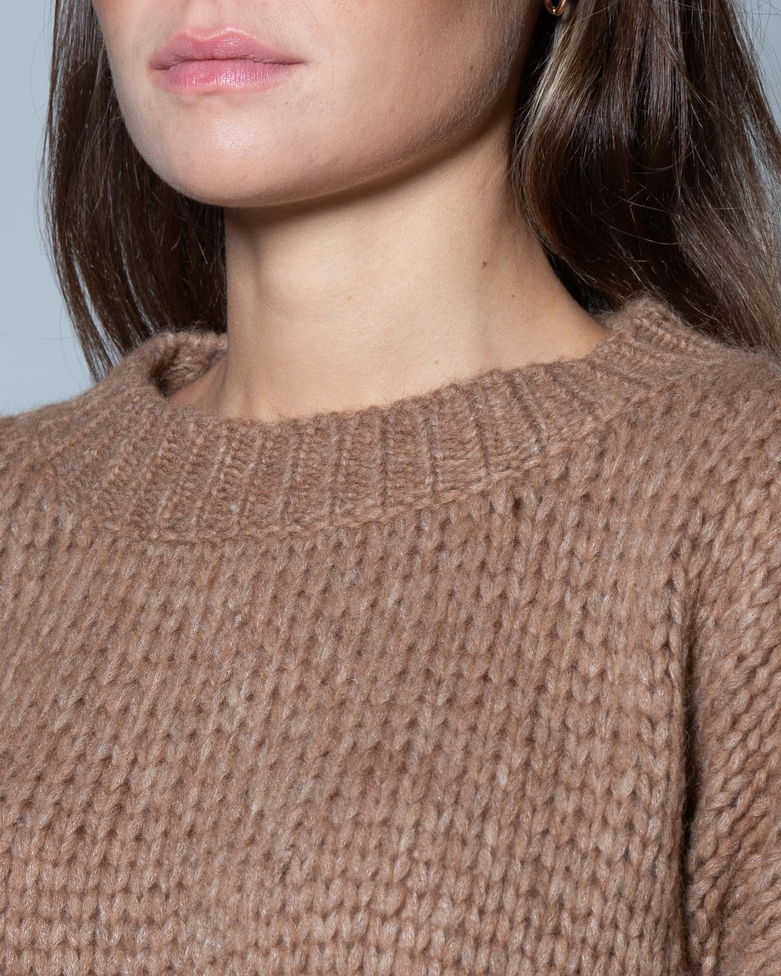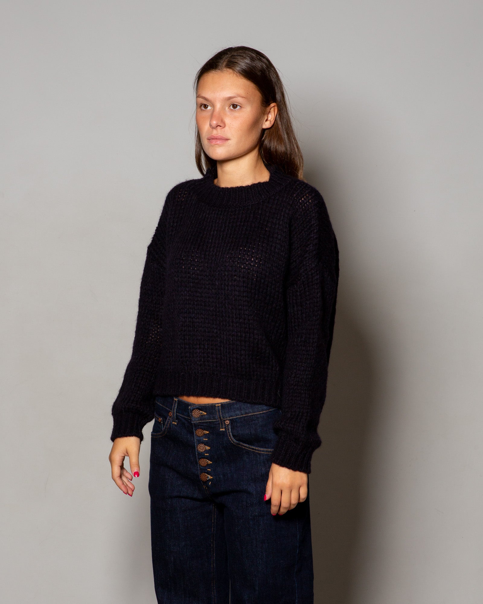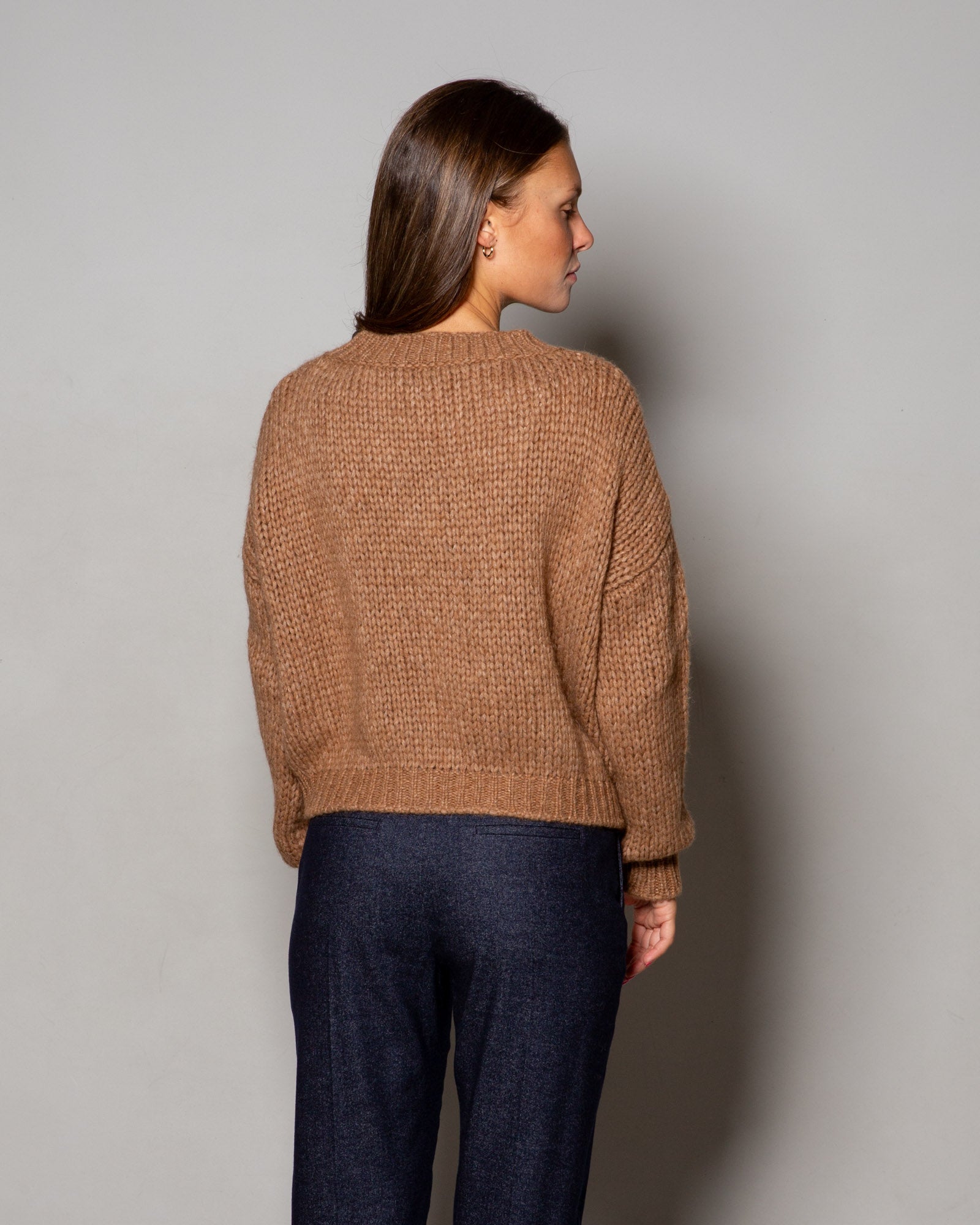 La maglia girocollo Roberto Collina racconta l’incontro tra tradizione artigianale e ricerca contemporanea, in un capo che unisce comfort e stile essenziale. Realizzata in un pregiato mix con baby alpaca, regala una mano soffice e avvolgente, arricchita da una lavorazione a trama larga che dona leggerezza e carattere al design.