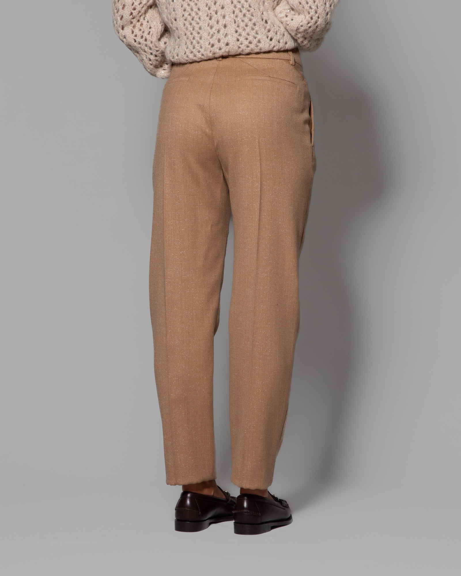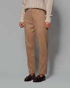 Le tasche oblique laterali e le posteriori nascoste sottolineano l’armonia delle proporzioni, mentre la vita media con passanti per cintura garantisce praticità e una vestibilità impeccabile. Un modello raffinato che rappresenta lo stile autentico di Eleventy, capace di fondere tradizione sartoriale e lifestyle contemporaneo, nel segno del Made in Italy.