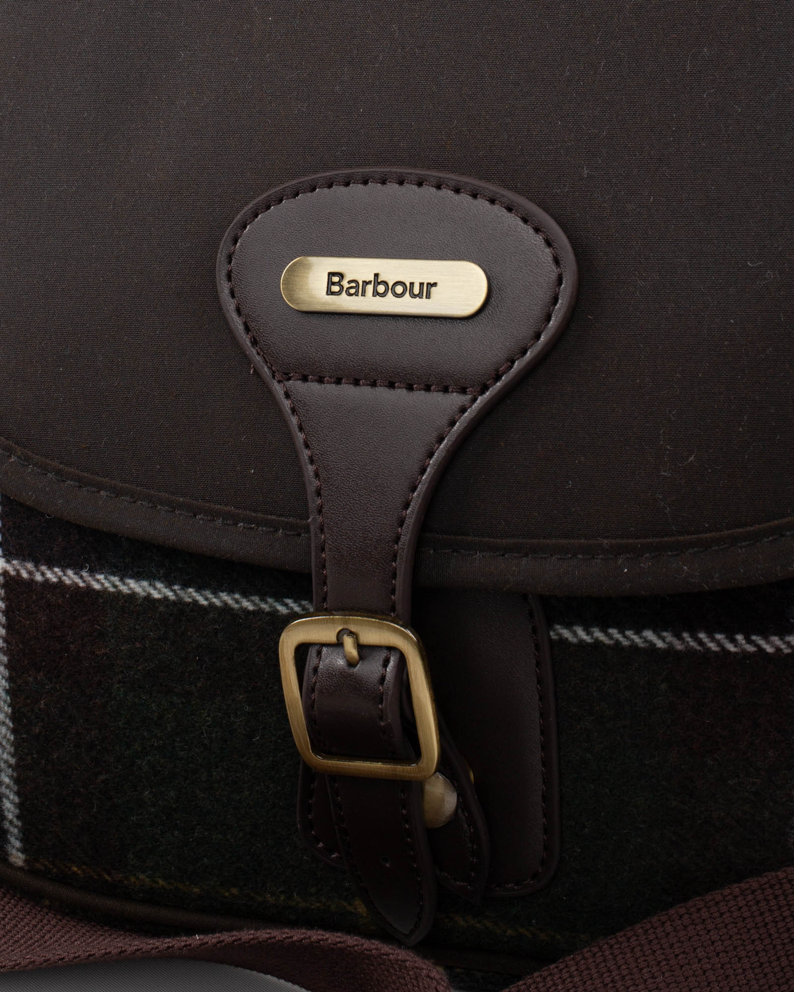• Targhetta frontale in metallo effetto ottone con logo Barbour