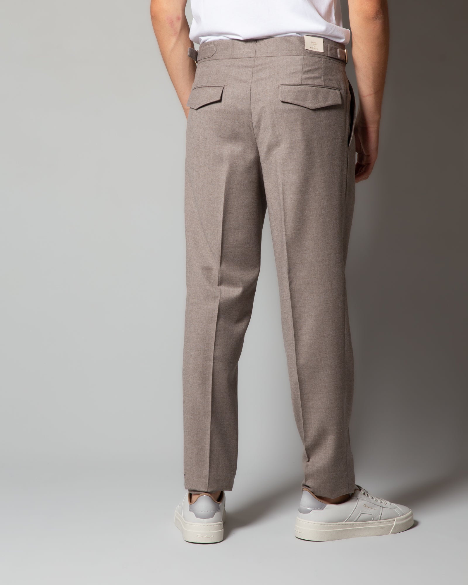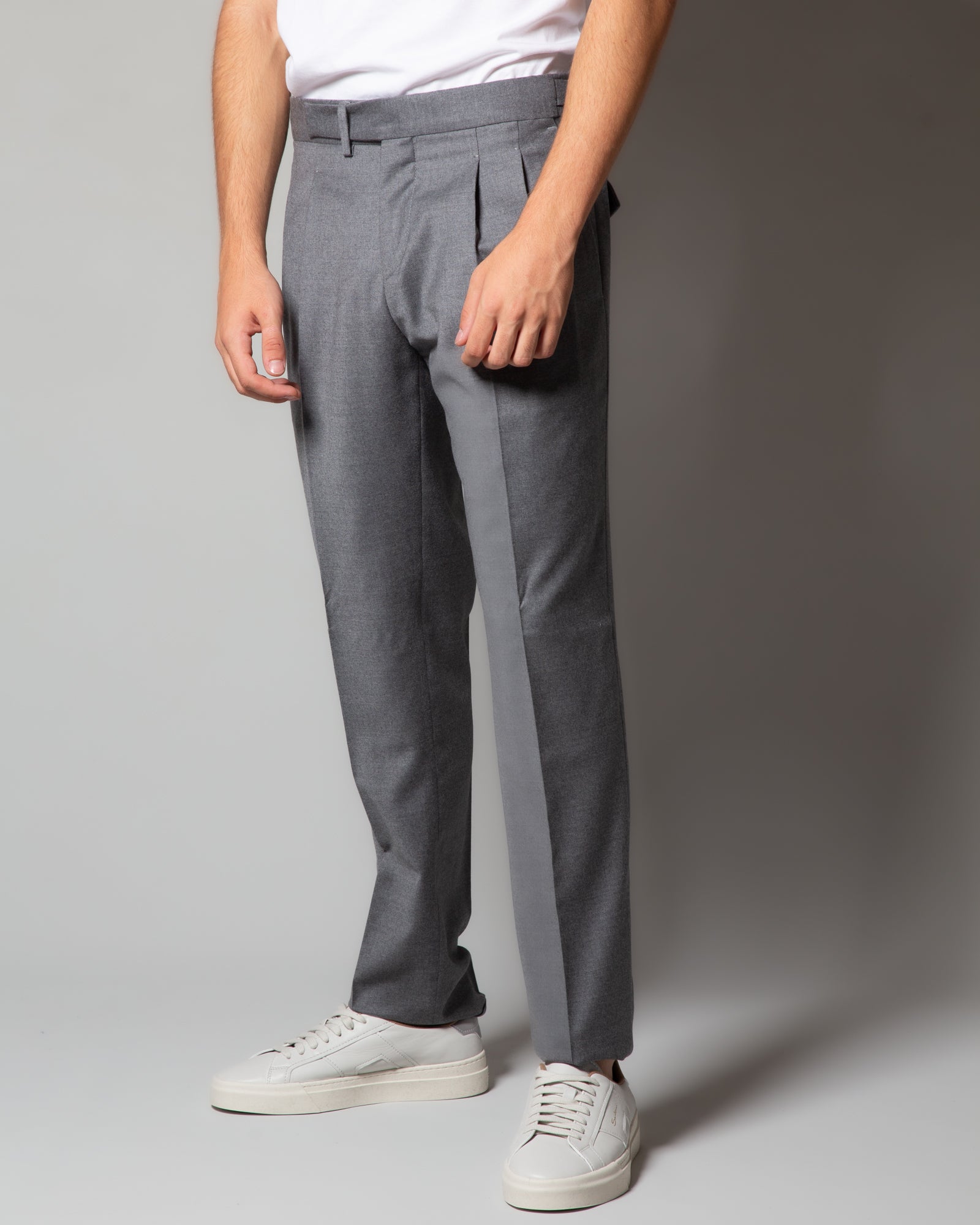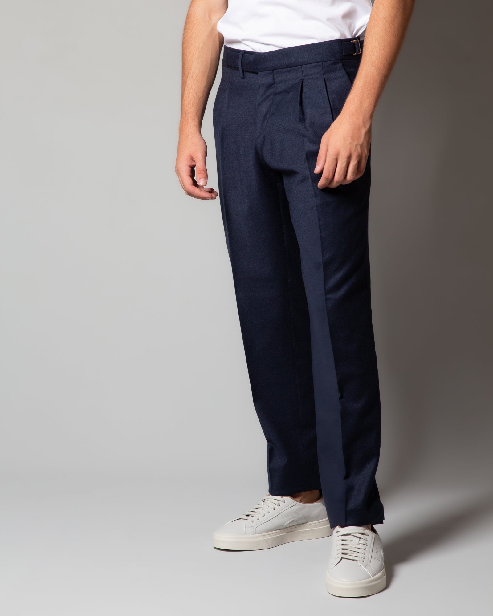 Pantaloni in lana con cinturino e pince