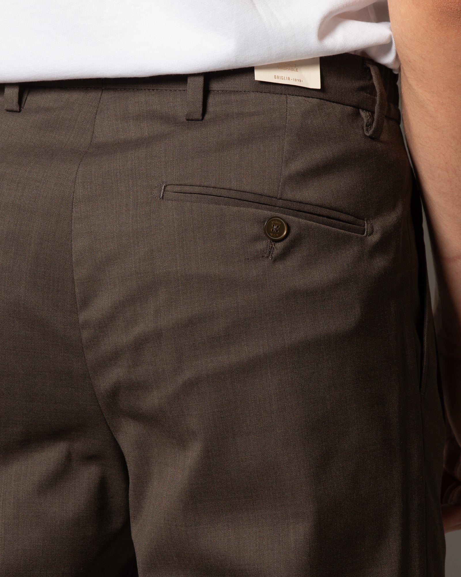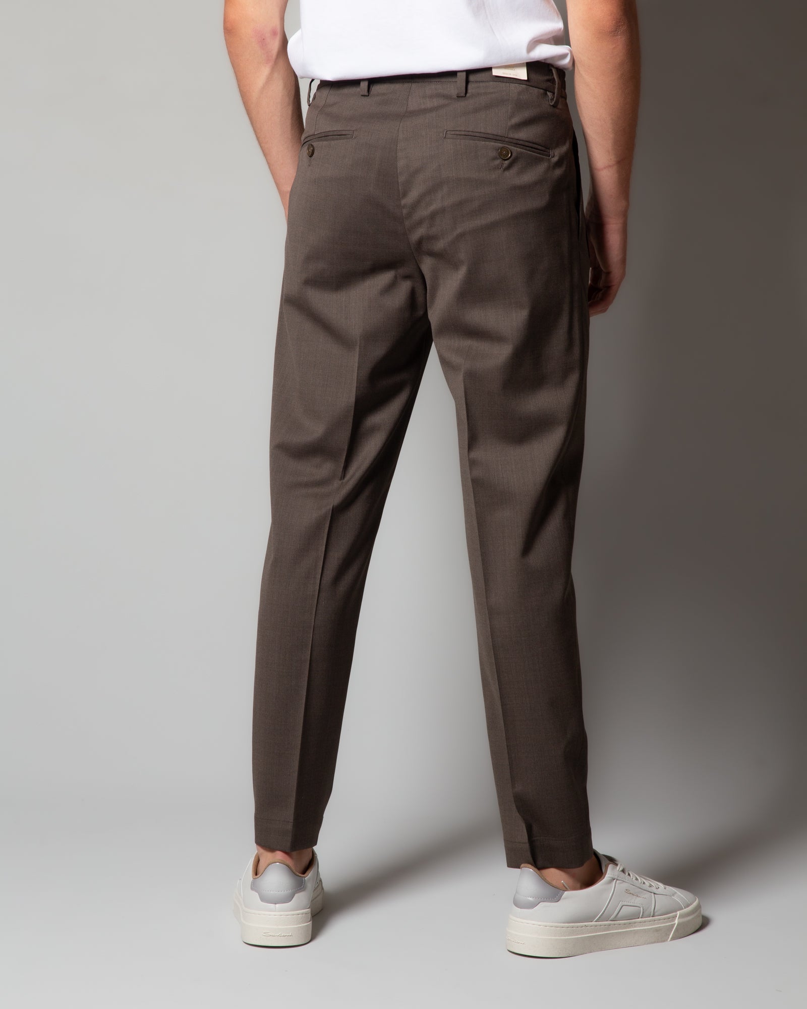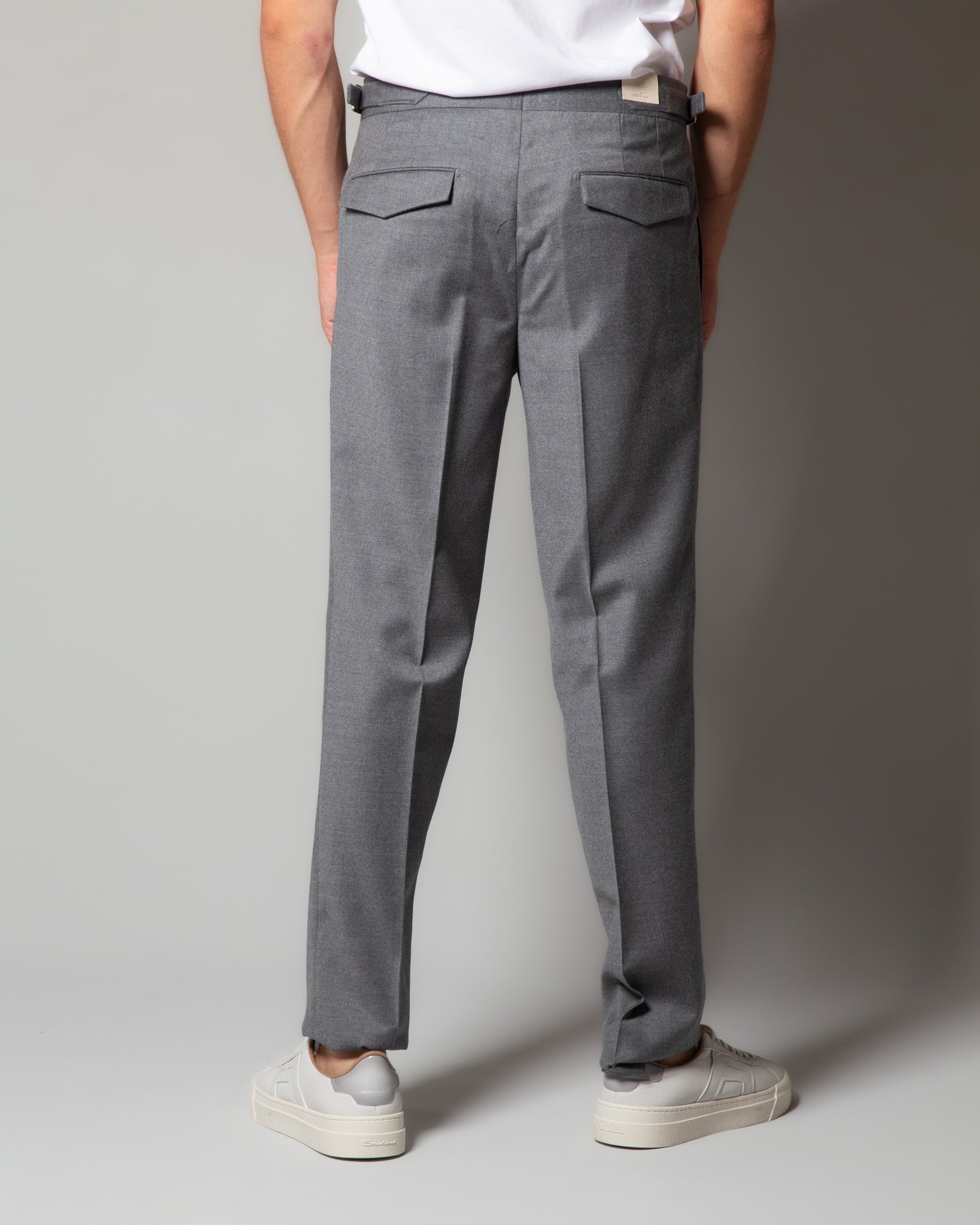 Pantaloni in lana con cinturino e pince