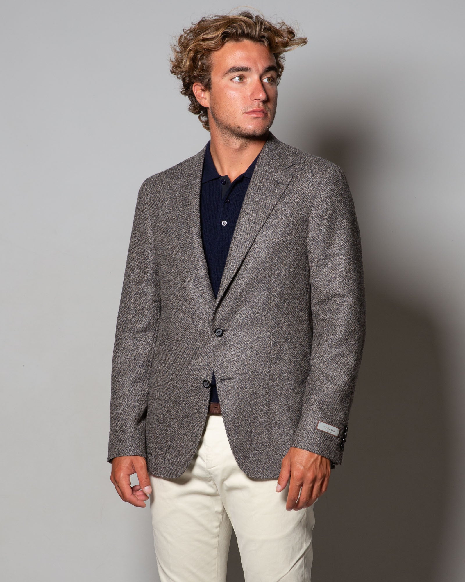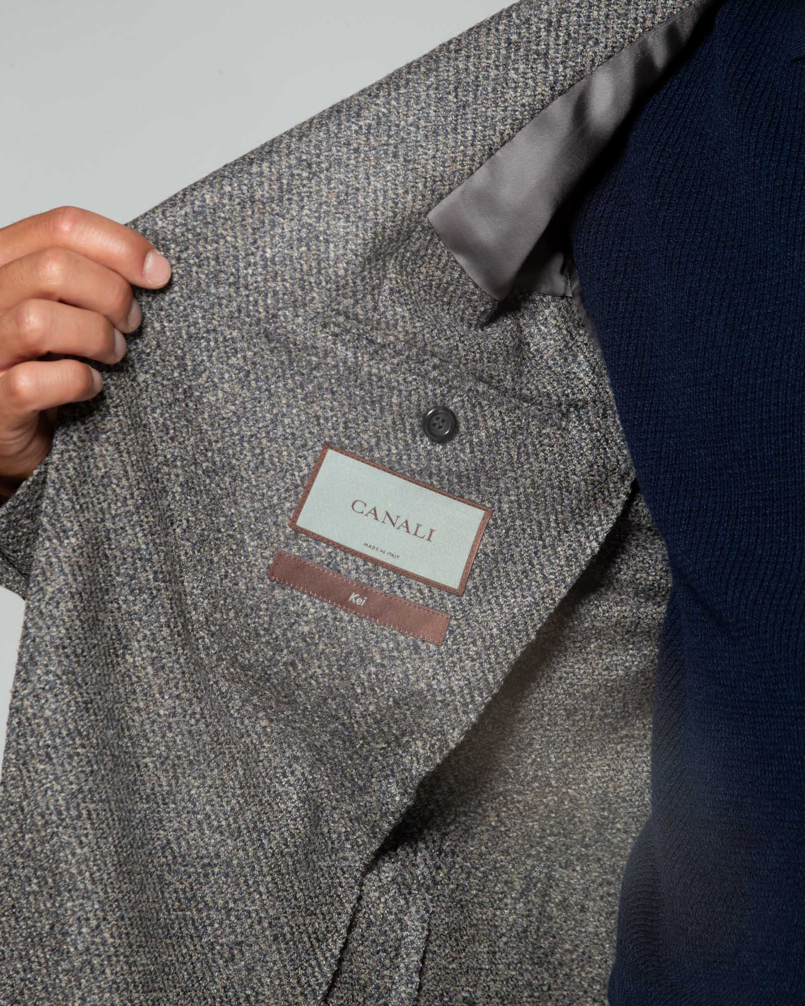 Le tasche a bordini con aletta e il taschino tagliato sul petto aggiungono un tocco di classicità, mentre la lunghezza proporzionata valorizza la silhouette. Realizzata con la maestria tipica di Canali, simbolo di eccellenza sartoriale Made in Italy, questa giacca rappresenta il perfetto punto d’incontro tra comfort, qualità e stile senza tempo.