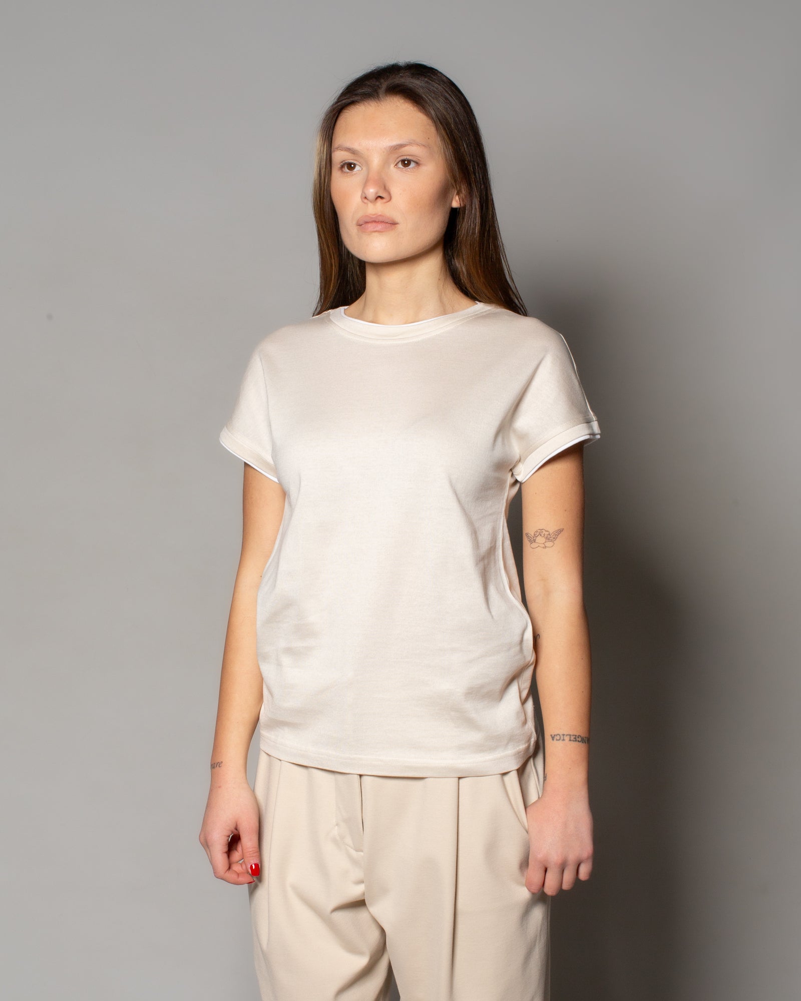 Maglia manica corta in cashmere e seta