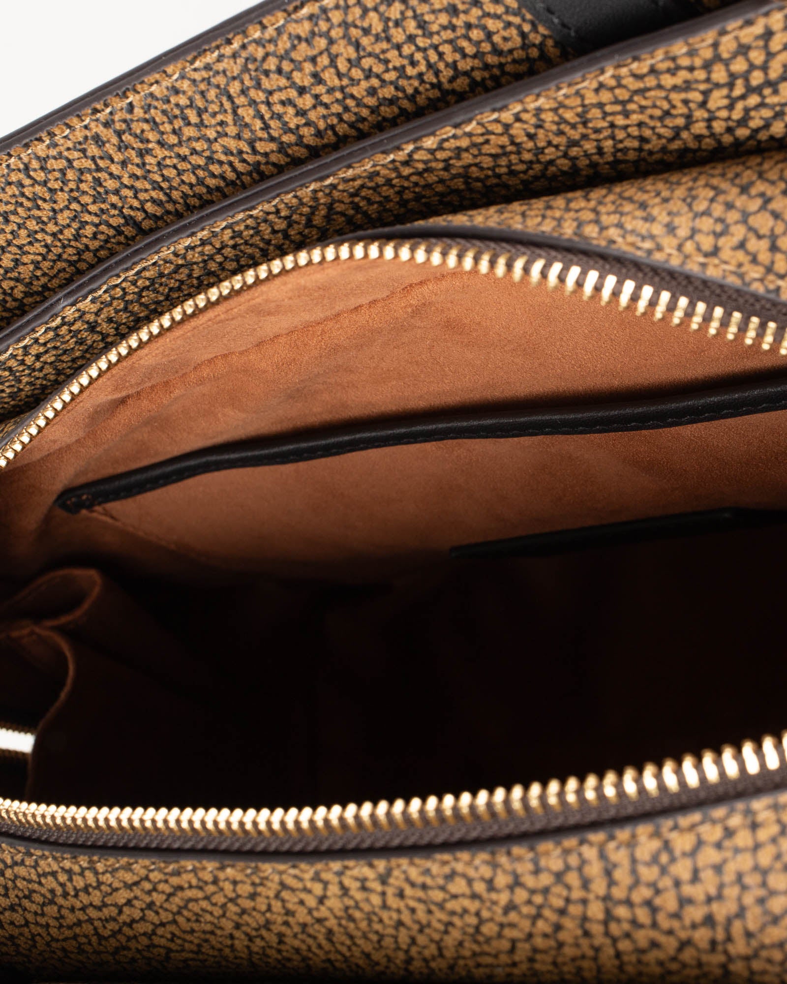 La Tulip di Borbonese è una borsa che coniuga armoniosamente leggerezza e raffinatezza. Realizzata in tela rivestita OP con dettagli in pelle, esprime la maestria artigianale del brand e un gusto contemporaneo che la rende perfetta per ogni giorno. La chiusura centrale con zip metallica e doppio cursore aggiunge praticità e sicurezza, mentre la fodera effetto camoscio regala una piacevole sensazione al tatto e un tono sofisticato all’interno.