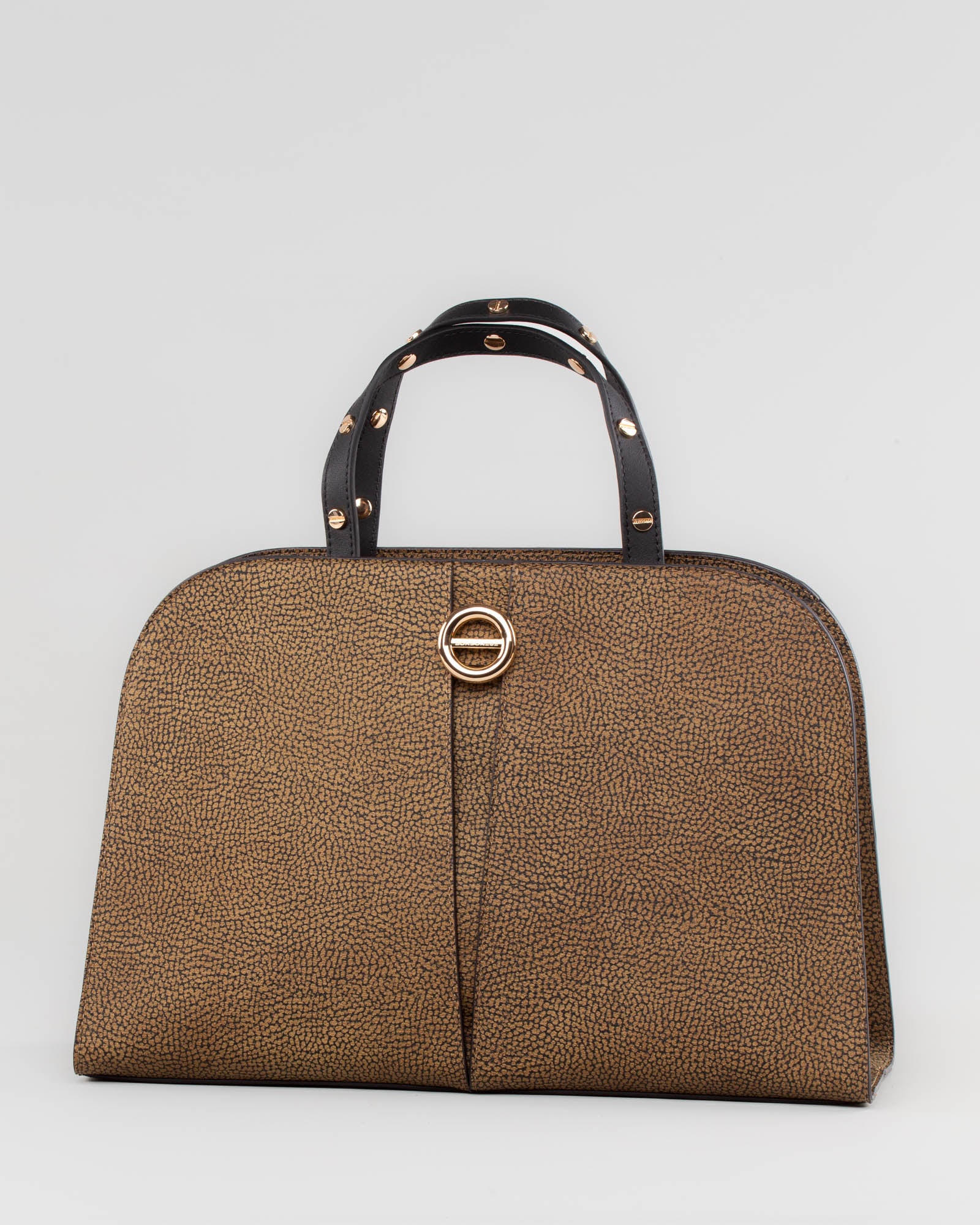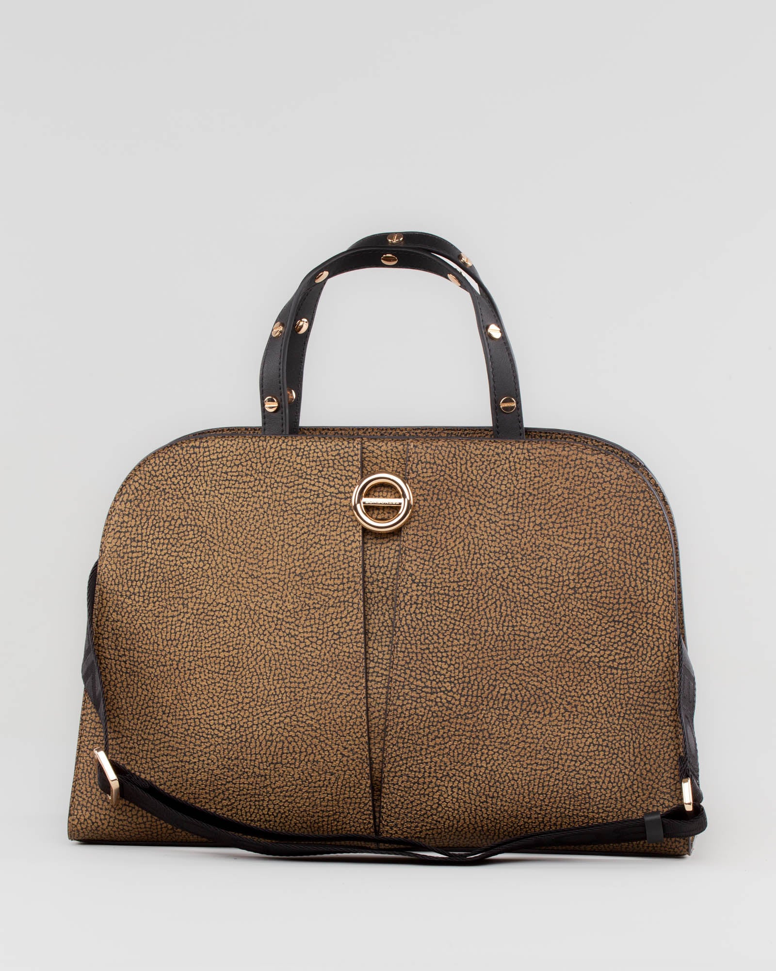 La tracolla in nastro logato, regolabile e removibile, offre libertà di movimento e versatilità d’uso, mentre le metallerie oro chiaro donano un’eleganza discreta. Una creazione dal fascino senza tempo, fedele all’identità Borbonese, dove ogni dettaglio riflette l’equilibrio tra estetica e funzionalità.