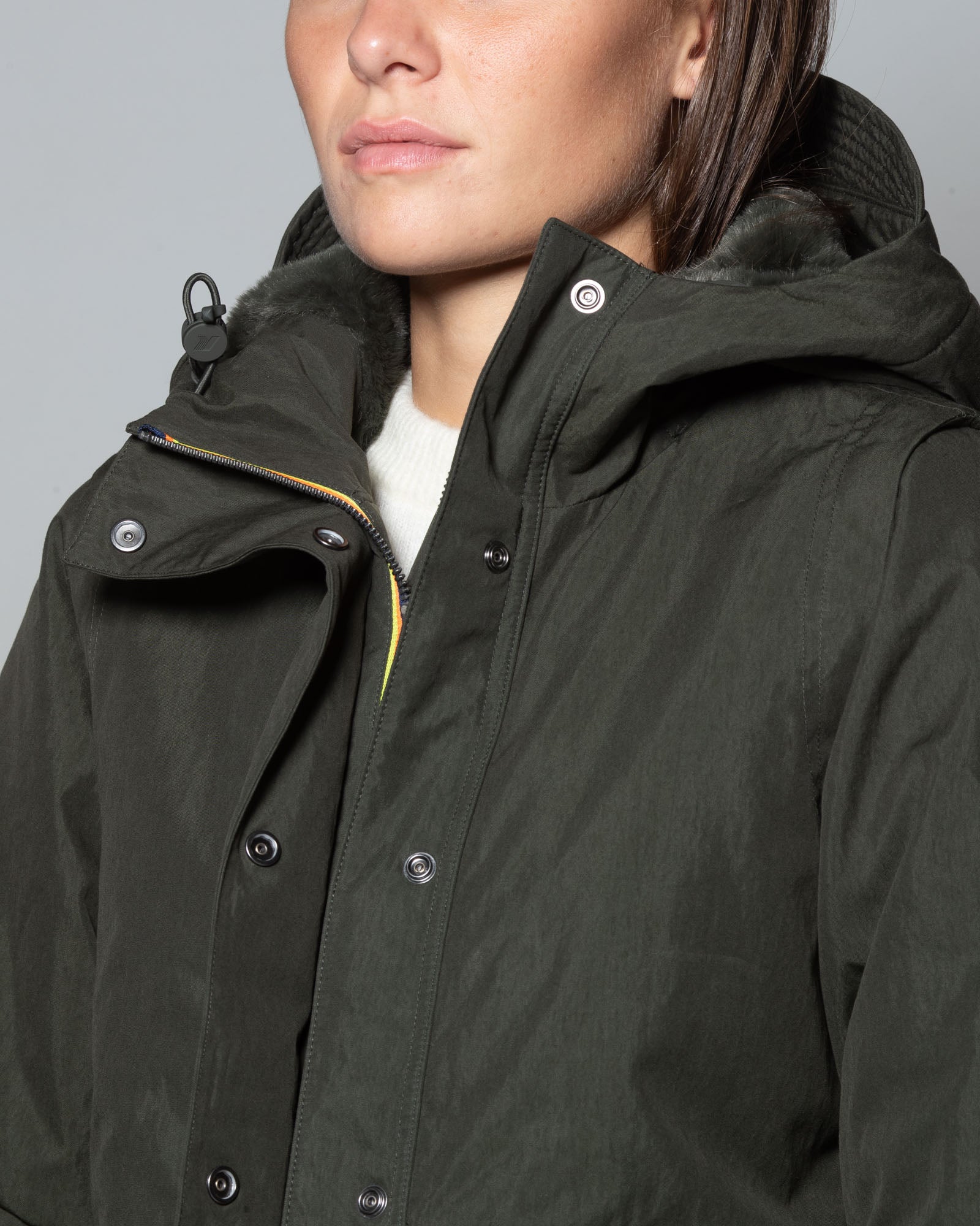 Un design pensato per affrontare la stagione fredda con leggerezza e comfort. Il parka corto Ideler di K-Way con cappuccio unisce lo stile contemporaneo alla funzionalità, grazie al tessuto tecnico dalla mano cotone che regala una sensazione naturale e protettiva. L’imbottitura interna assicura calore senza appesantire, mentre la fodera e i dettagli rifiniti con cura lo rendono un capo versatile e affidabile in ogni occasione.