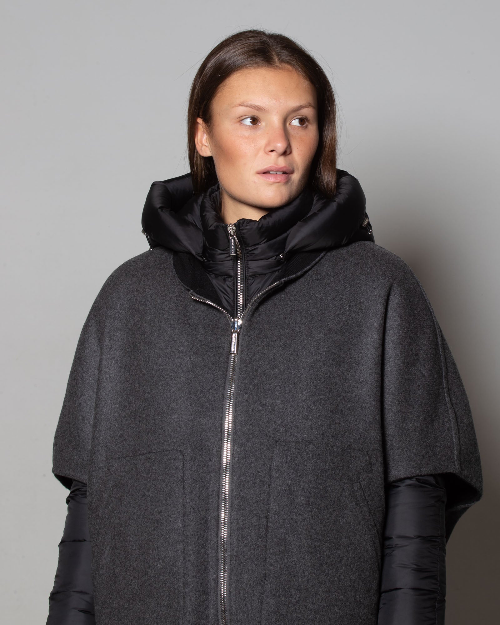 Un capo che racchiude in sé tre anime diverse, pensato per accompagnare la stagione fredda con eleganza e funzionalità. La cappa corta Pegasto Tosca di MooRER unisce la preziosità della lana double con cashmere alla praticità di un piumino interno staccabile, imbottito in finissima piuma d’oca e realizzato in nylon dal delicato effetto cangiante. Un equilibrio perfetto tra calore, leggerezza e stile contemporaneo.