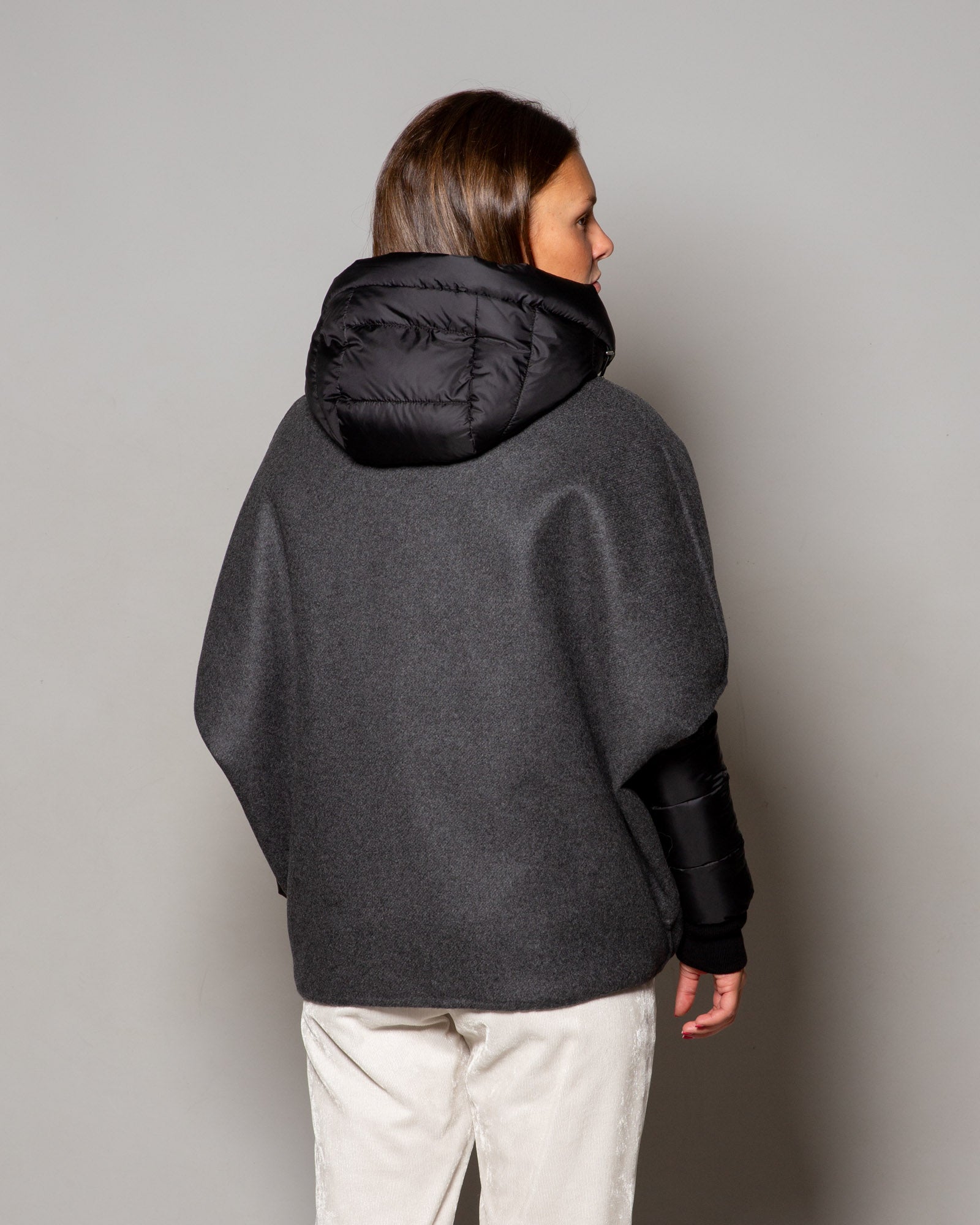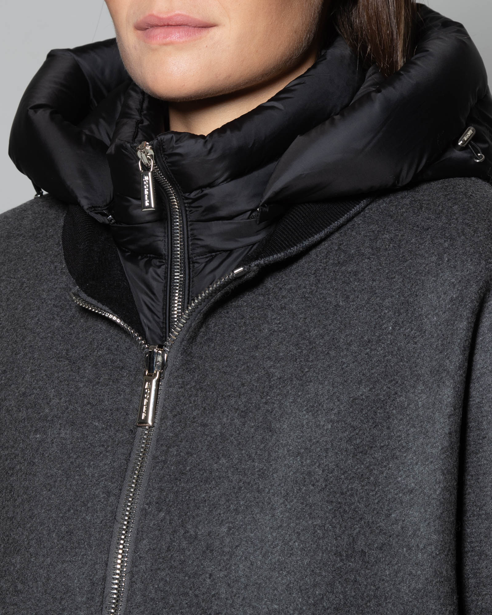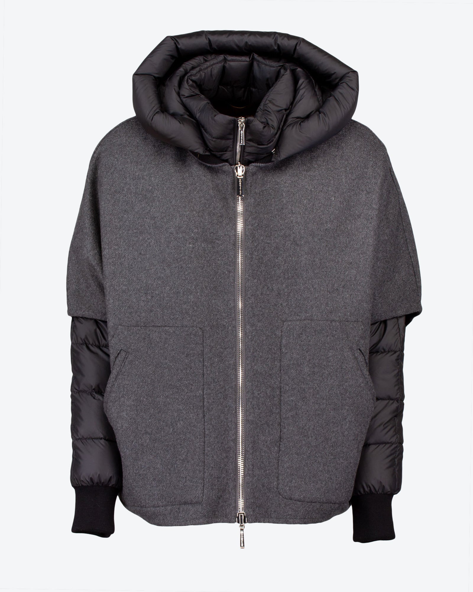 Ogni dettaglio è curato con la maestria che contraddistingue la maison: la zip a doppio cursore illumina il fronte, mentre il cappuccio staccabile regala un tocco di sofisticata morbidezza. I polsi in maglia di lana vergine, le tasche discrete e le linee pulite sottolineano la vocazione sartoriale di un capo che si trasforma a seconda delle esigenze, dal quotidiano elegante alle occasioni più speciali.