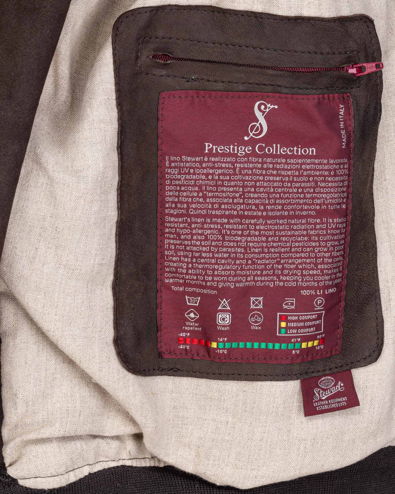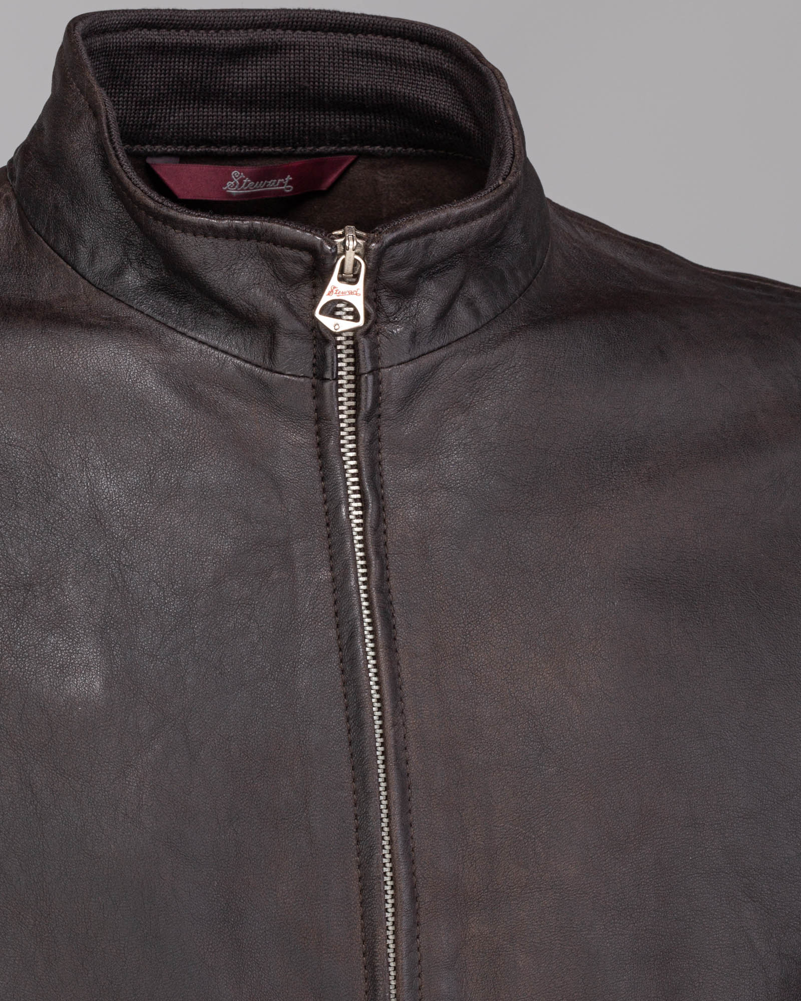 Stewart goatskin zip bomber jacket, a handcrafted creation with a sophisticated and practical soul. This unlined jacket, carefully crafted in Italy according to the best traditions, embodies timeless elegance.