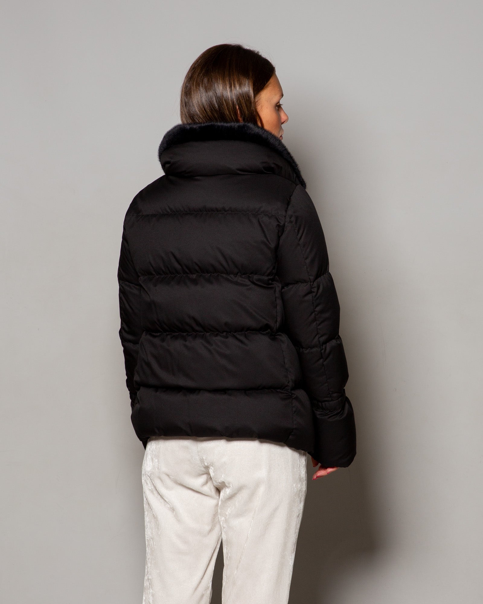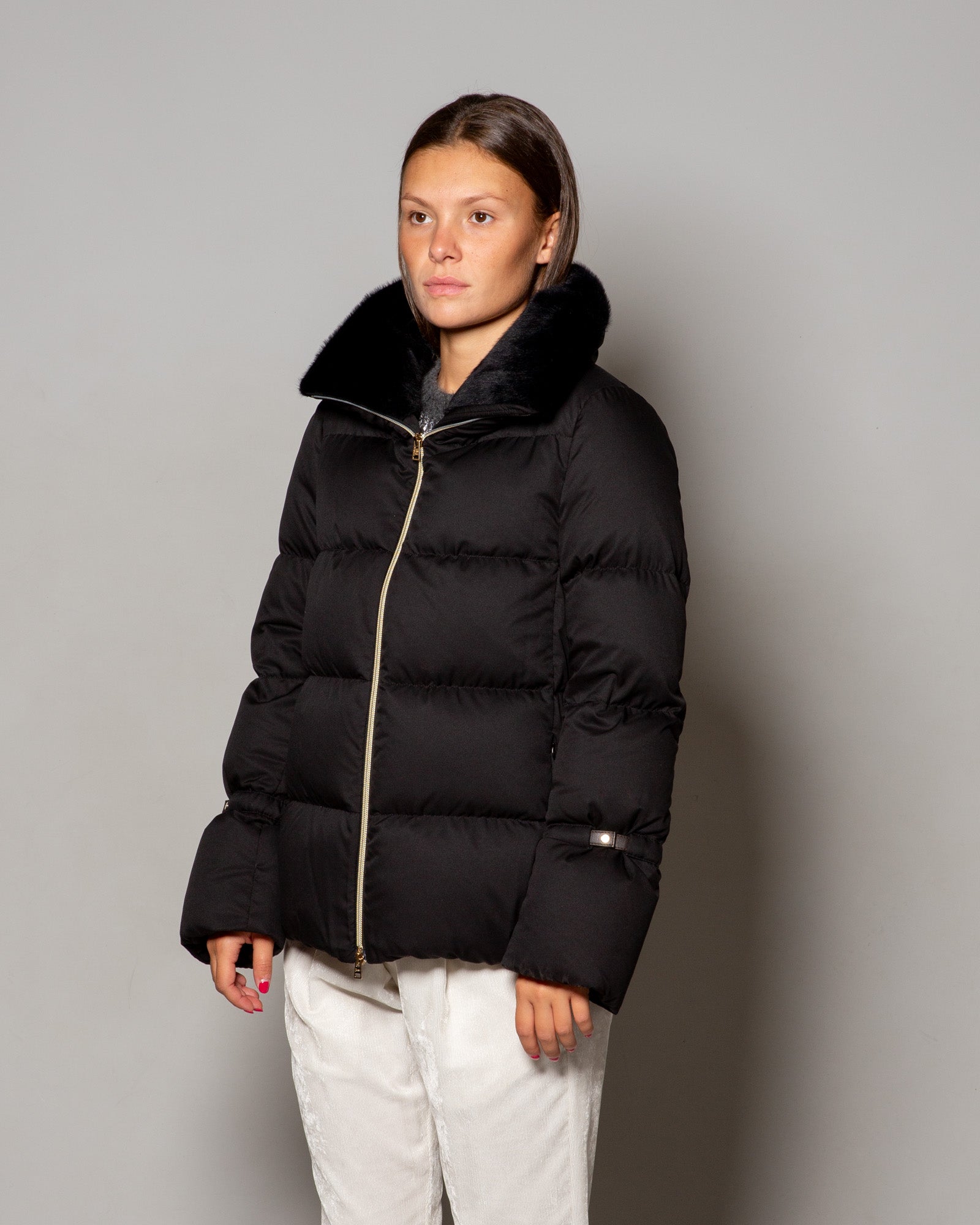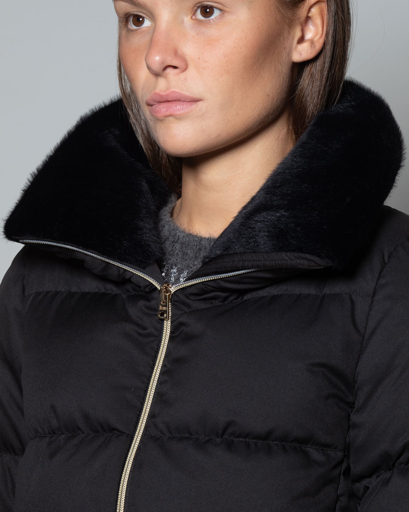 Linee pulite e volumi leggeri danno vita a un capo che si inserisce con naturalezza in ogni guardaroba. Il poliestere dall’aspetto opaco regala una mano vellutata e morbida, esaltando il design essenziale e contemporaneo. La leggerezza dell’imbottitura in piuma avvolge con calore discreto, offrendo comfort quotidiano senza rinunciare a un’eleganza minimalista.