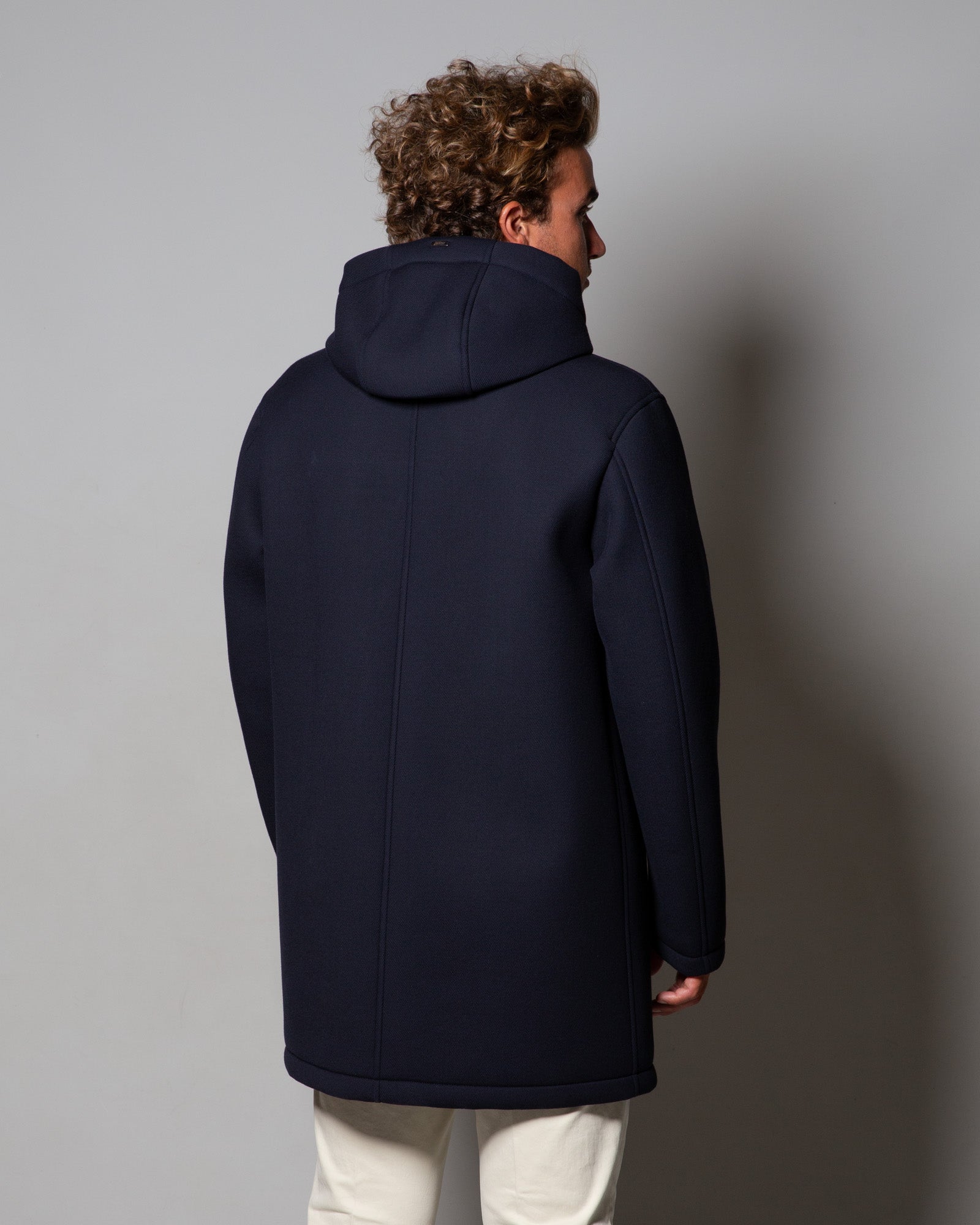 Il design contemporaneo, con cappuccio regolabile e zip a doppio cursore, offre comfort e praticità in ogni condizione. L’imbottitura leggera in ovatta assicura un calore bilanciato, ideale per affrontare la stagione con eleganza disinvolta. Le tasche laterali con zip e il logo in metallo sul retro completano il capo con la sobrietà distintiva di Herno, marchio che da sempre trasforma la performance in stile.