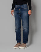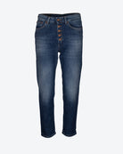 I jeans Koons Dondup rappresentano uno dei modelli più iconici del brand, simbolo di un denim autentico e dallo stile deciso. Realizzati in denim stretch blu scuro, si distinguono per la vestibilità loose fit con vita medio/bassa, pensata per offrire comfort e personalità. La bottoniera a vista con bottoni lavorati e il risvoltino non cucito accentuano il carattere informale e versatile del modello.