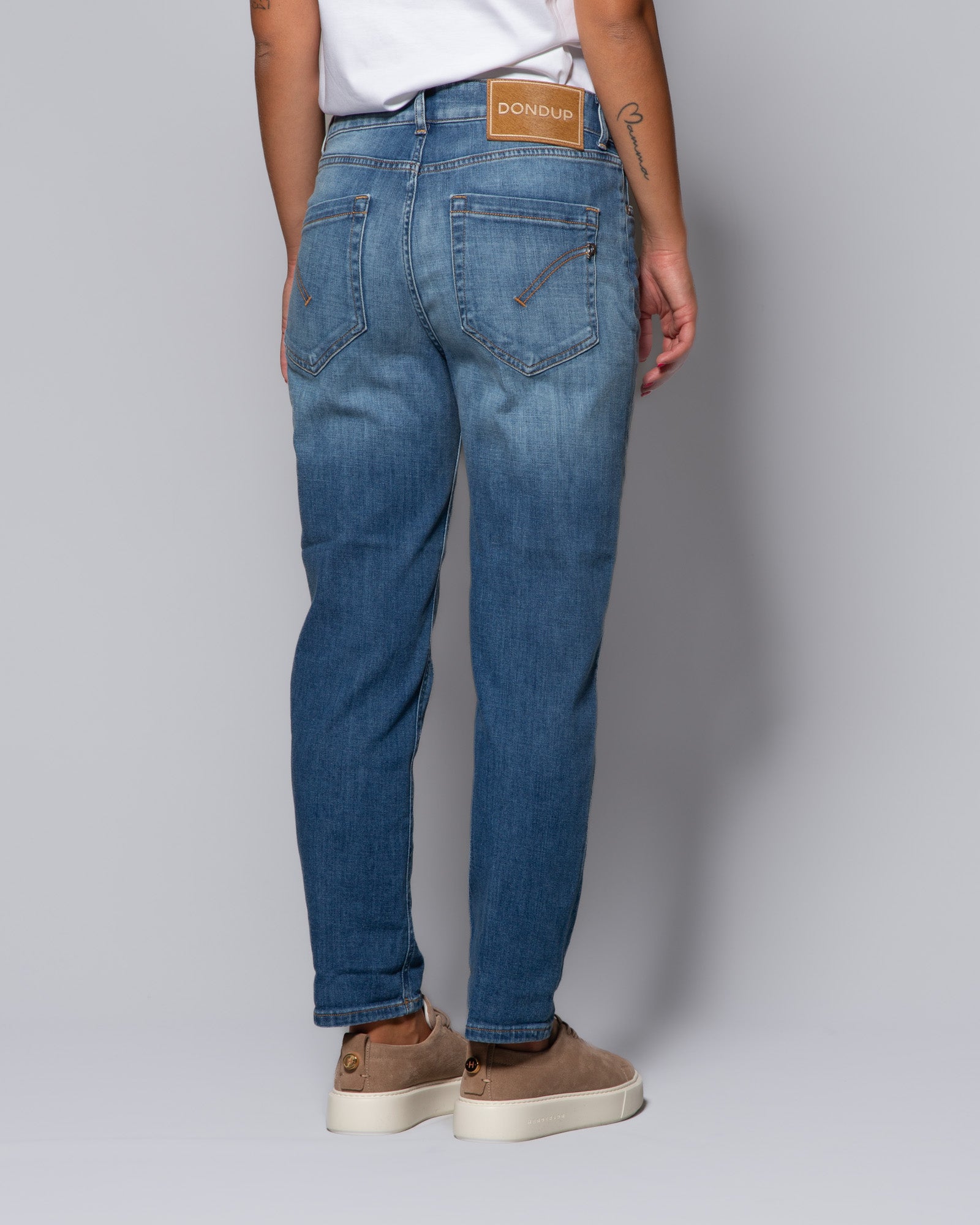 Il design a cinque tasche, arricchito dall’etichetta in pelle sul retro, riflette l’attenzione al dettaglio e la ricerca stilistica tipica di Dondup. Un capo dal fascino senza tempo, Made in Italy, che coniuga tradizione e contemporaneità, ideale per chi cerca un jeans dal taglio moderno ma profondamente radicato nell’heritage del marchio.