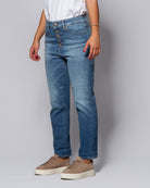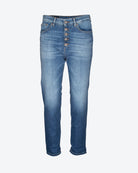 I jeans Koons Dondup rappresentano uno dei modelli più iconici del brand, simbolo di un denim autentico e dallo stile deciso. Realizzati in denim stretch blu medio, si distinguono per la vestibilità loose fit con vita medio/bassa, pensata per offrire comfort e personalità. La bottoniera a vista con bottoni lavorati e il risvoltino non cucito accentuano il carattere informale e versatile del modello.