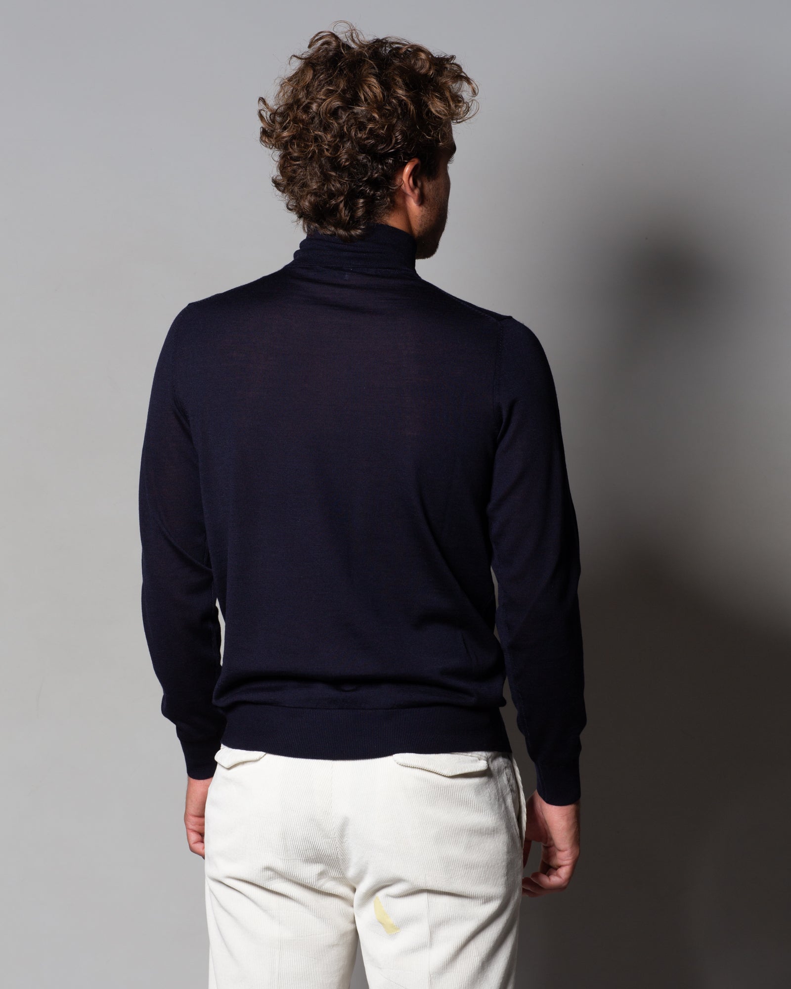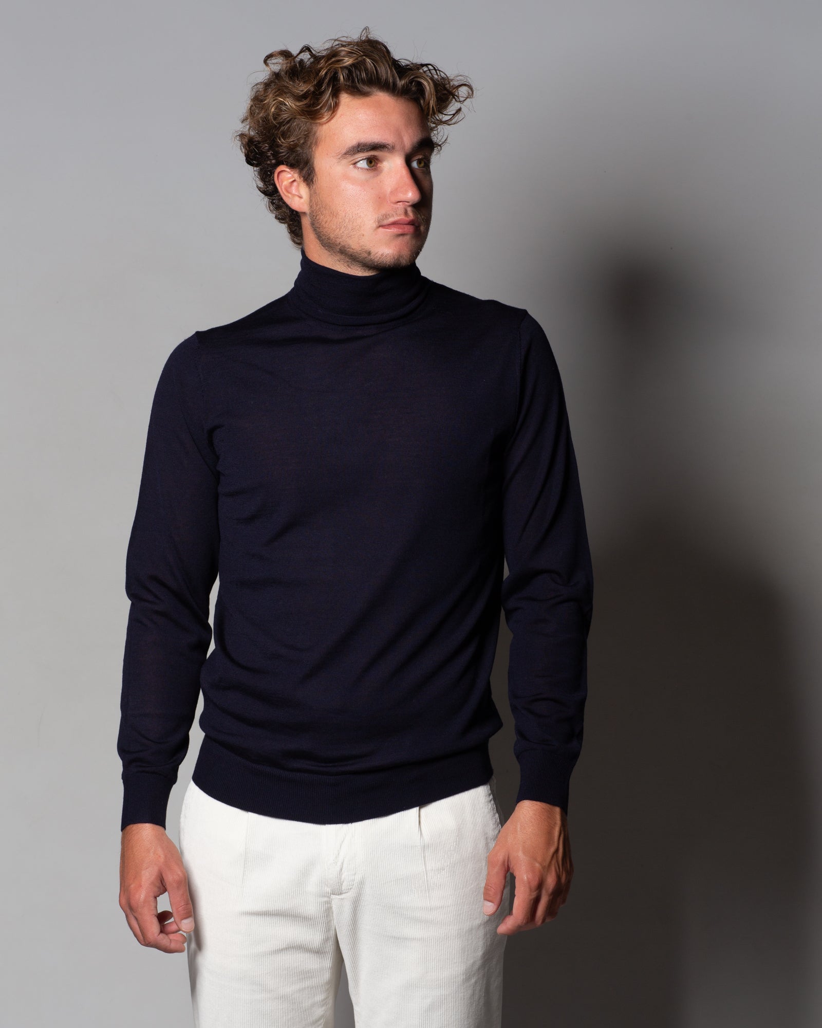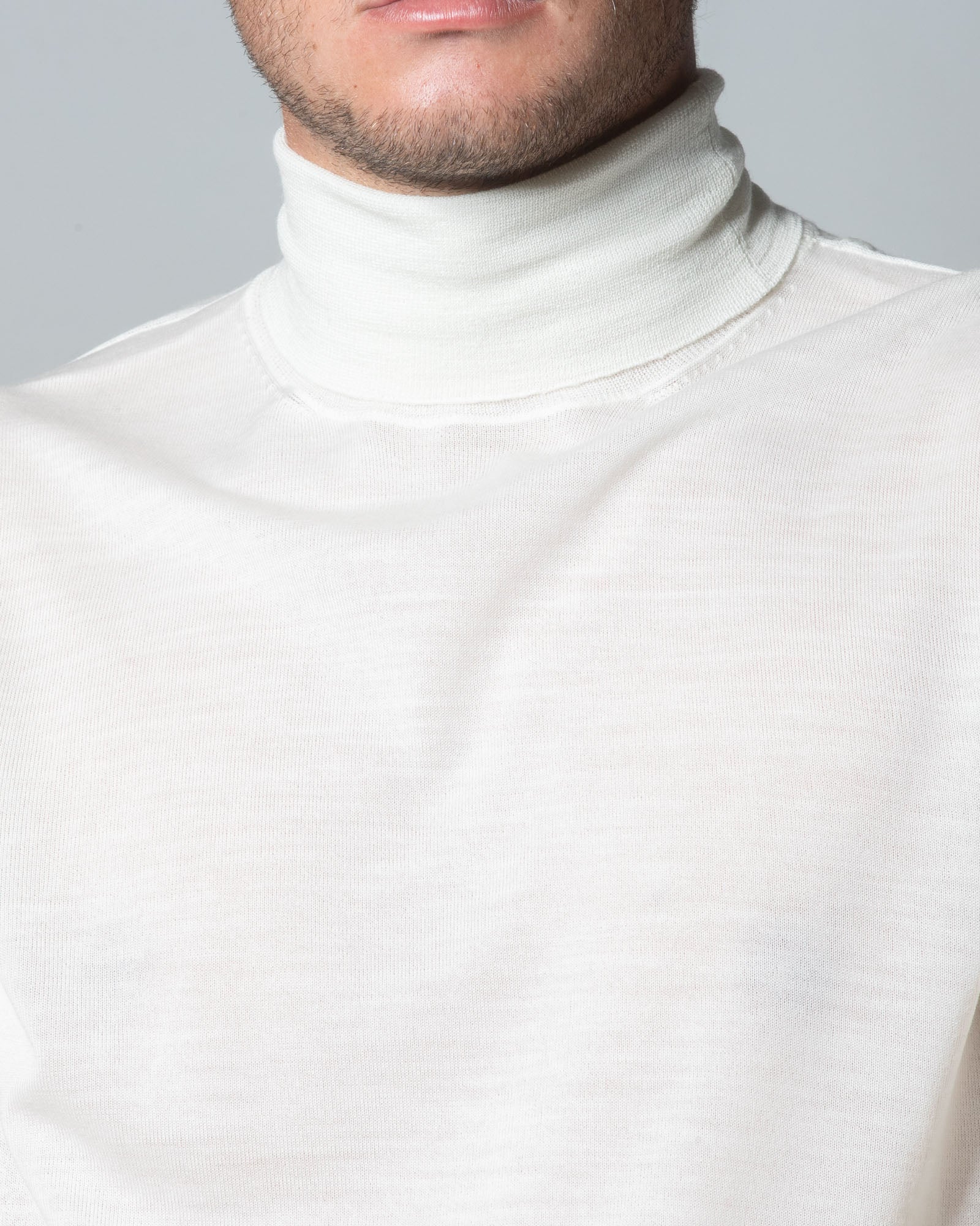 La texture morbida e termoregolante della merinos avvolge con naturalezza, mentre il collo alto e i bordi a costine su fondo e polsi completano un capo versatile e impeccabile. Perfetto sotto la giacca per un tocco sofisticato o da solo per un’eleganza sobria e contemporanea.