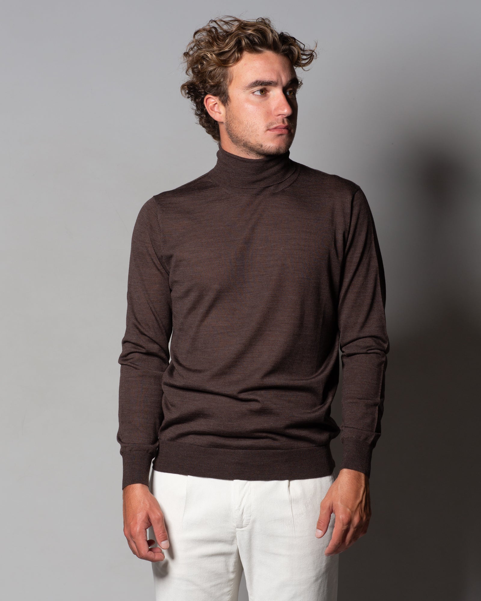 Il dolcevita in lana merinos Macciocu esprime l’eleganza essenziale e la qualità autentica che caratterizzano il nostro marchio. Realizzato con pura lana merinos extrafine in finezza 18, nasce dalla collaborazione con i migliori artigiani italiani, custodi di una tradizione manifatturiera che coniuga comfort e raffinatezza.