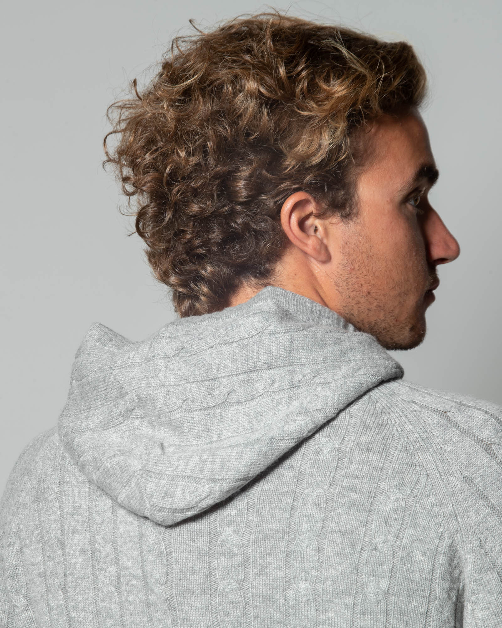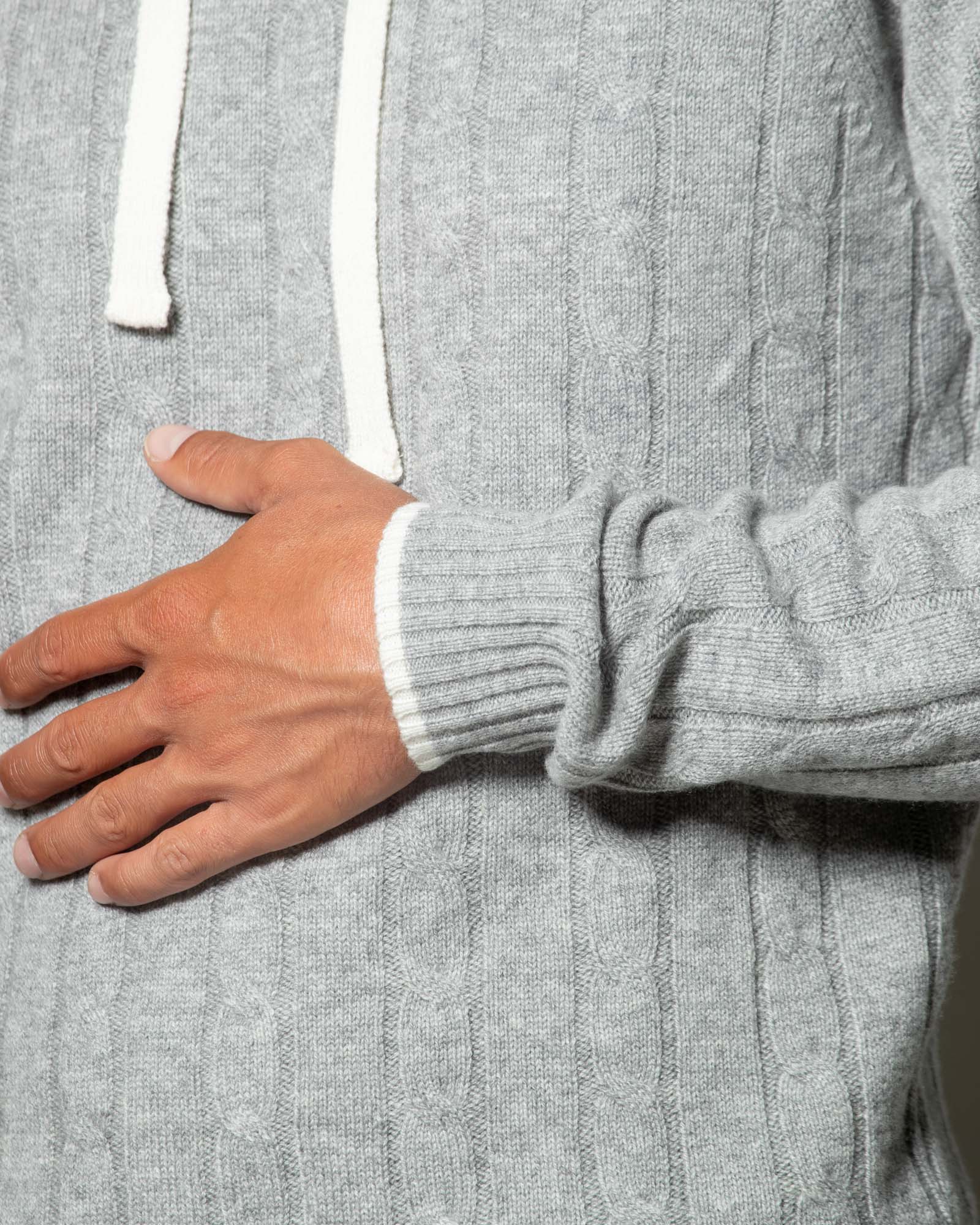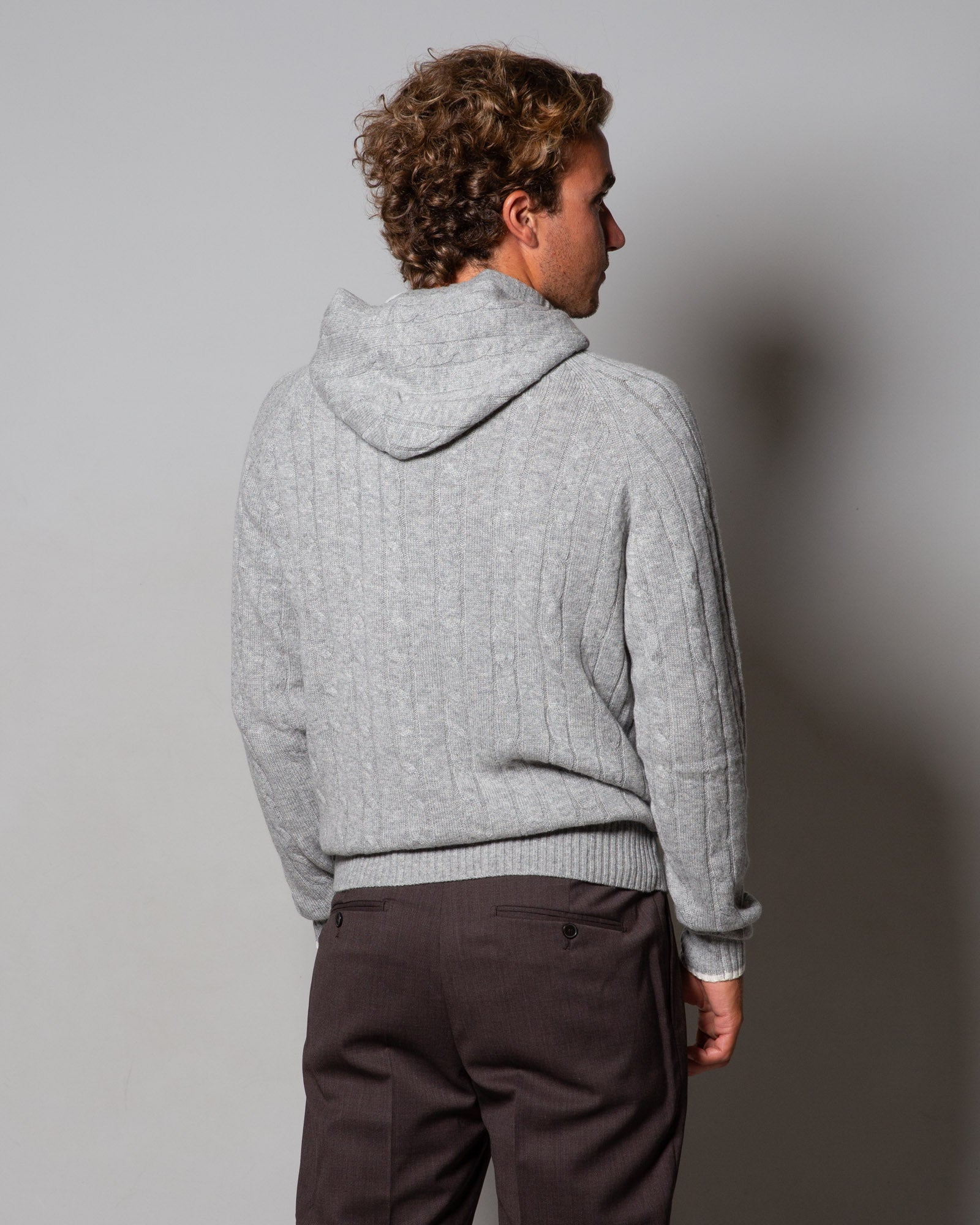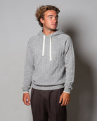 Questa felpa in maglia con cappuccio di L.B.M. 1911 unisce spirito sportivo e raffinata eleganza artigianale. Realizzata in una pregiata mischia di lana vergine e cashmere, avvolge il corpo con una morbidezza naturale e un calore confortevole, perfetto per le giornate più fredde. La lavorazione a treccia impreziosisce il design con una texture sofisticata, mentre i dettagli a contrasto su polsini e coulisse donano un carattere moderno e disinvolto.