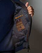Composizione 90% Lana vergine, 10% Cashmere – Inserti tecnici in tessuto resinato idrorepellente – Imbottitura in piuma d’oca