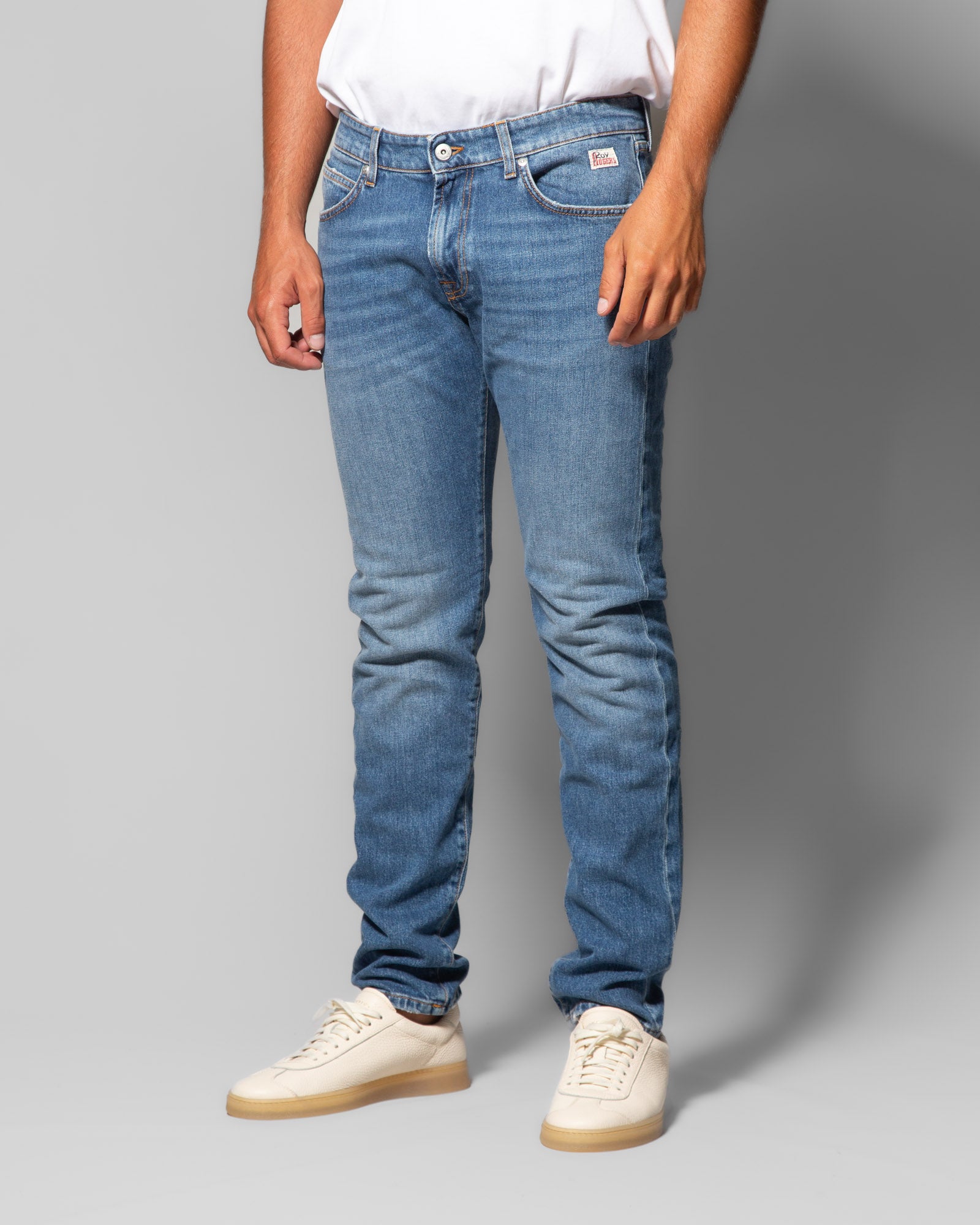 I jeans Leland di Roy Roger’s rappresentano la sintesi ideale tra comfort e autenticità. Realizzati in denim medio con una piccola percentuale di elastodiene, offrono una vestibilità slim che segue con naturalezza la linea del corpo mantenendo piena libertà di movimento. La vita media e la costruzione pulita esprimono l’essenza del denim italiano: funzionale, curato nei dettagli e pensato per durare.