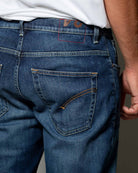 I jeans George di Dondup reinterpretano il concetto di eleganza quotidiana attraverso un denim stretch sostenibile dal lavaggio scuro e sofisticato. La linea skinny fit valorizza la silhouette senza rinunciare al comfort, mentre la vita bassa e la costruzione cinque tasche conservano il carattere autentico del jeans tradizionale. Il tessuto, composto da cotone biologico ed elastan riciclato, rappresenta la continua ricerca del brand verso un’eleganza responsabile e moderna.