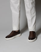 Hindustrie pleated chinos tell a story of short supply chain, craftsmanship and passion for design. Designed, drawn and produced entirely in Italy by Histores — an association of which Macciocu is proudly part — they represent the essence of conscious fashion, made of expert hands and contemporary vision.