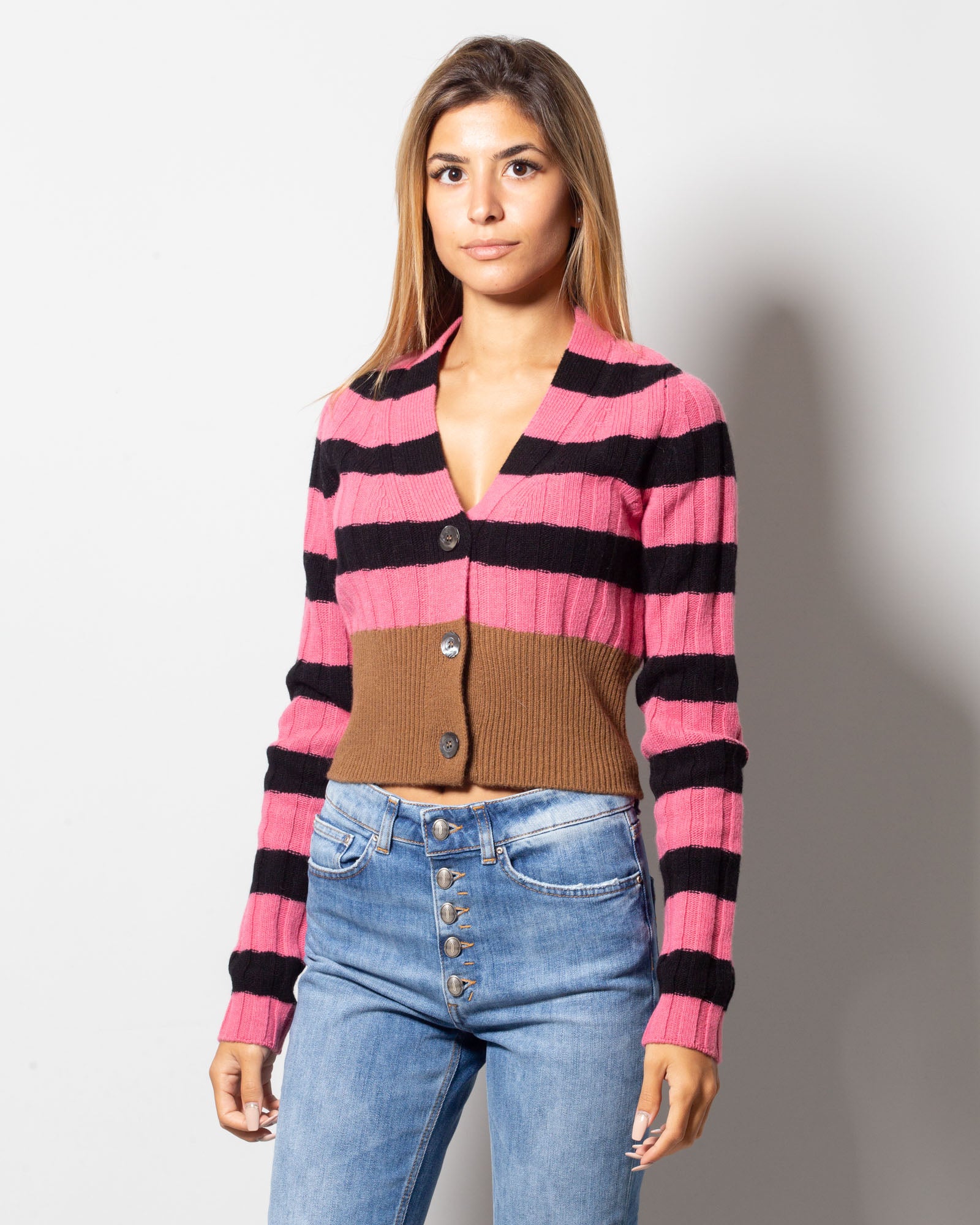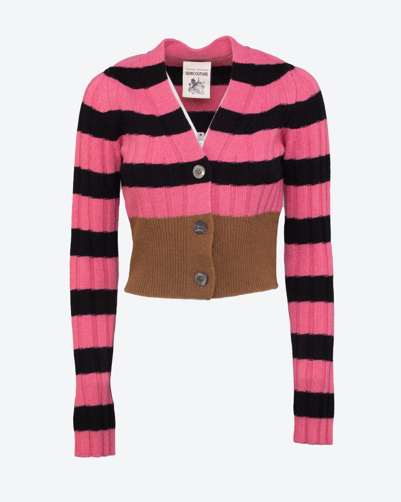 Semicouture Lizzy cardigan with contrasting striped pattern.