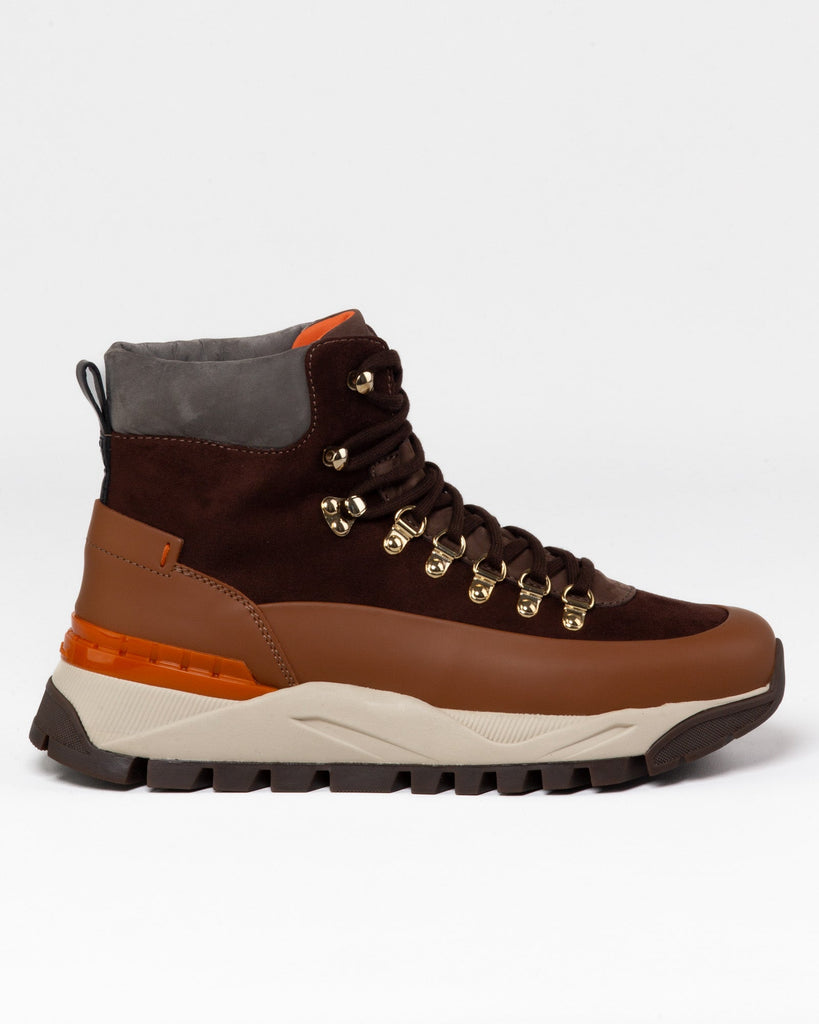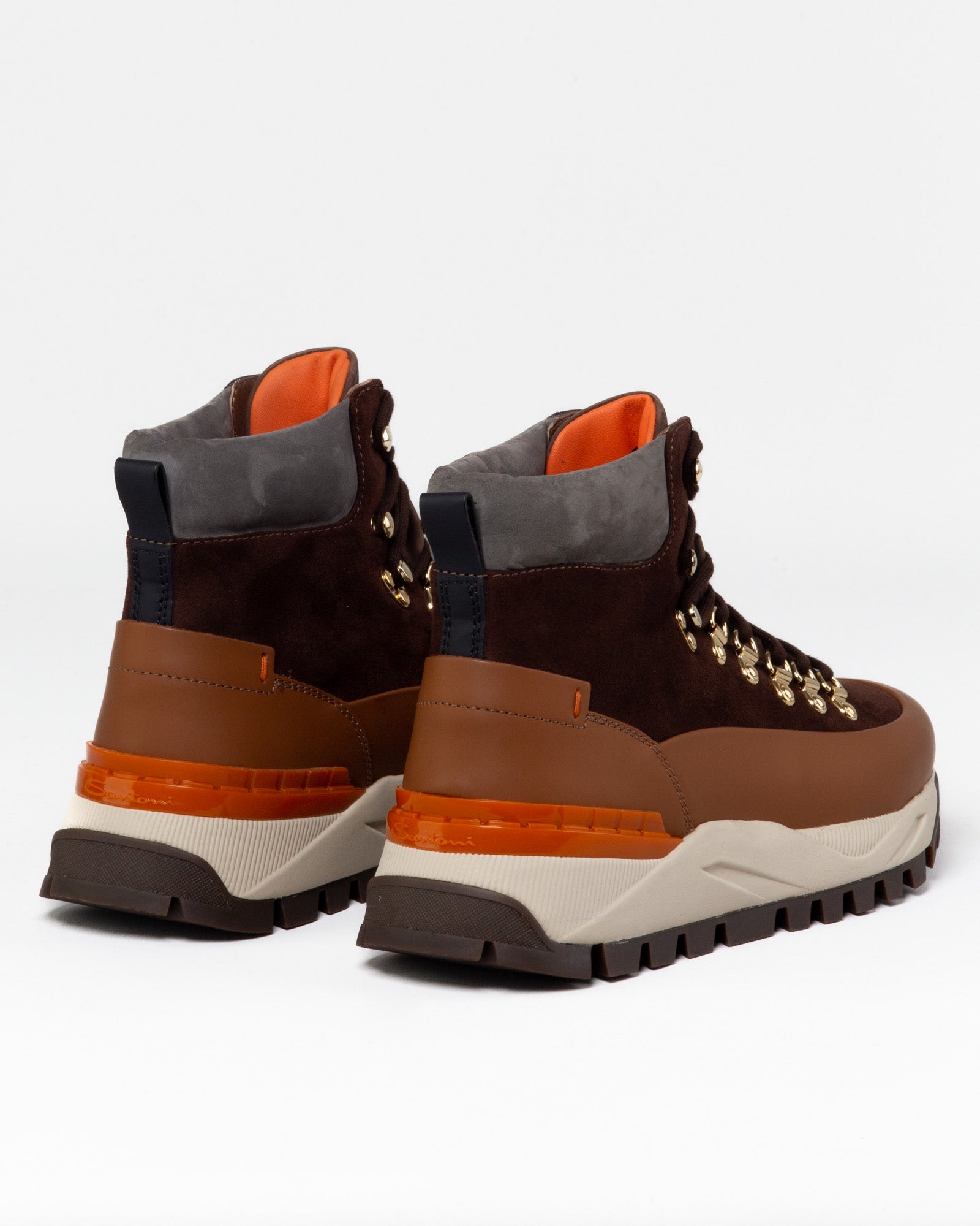 The innovation and luxury of Santoni footwear meets the world of Trekking, in a captivating boot with a contemporary style, created by the fusion of 2 fine leathers, smooth and suede.
