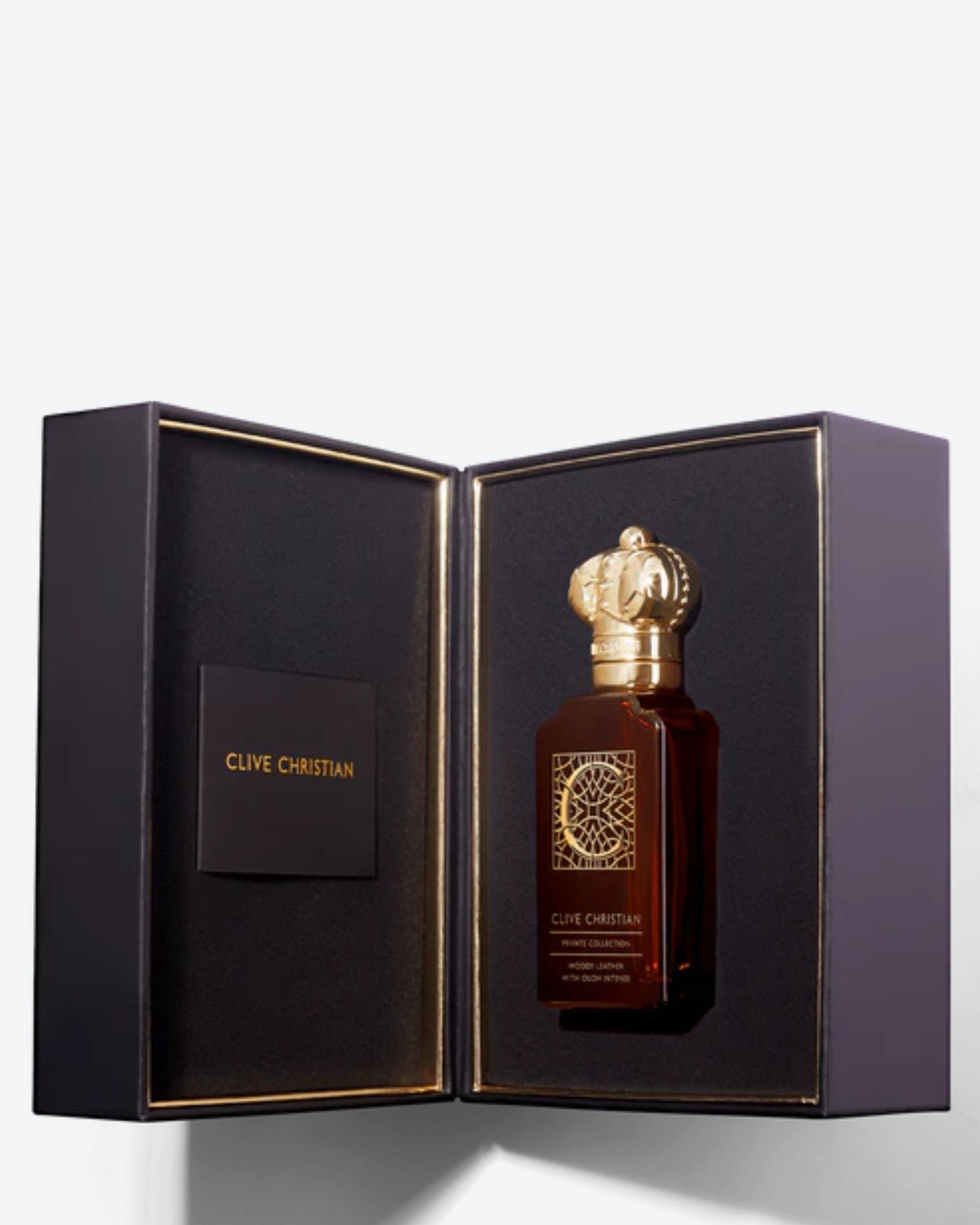 C - Woody Leather from Clive Christian's Private Collection embodies the wild beauty and intoxicating atmosphere of Scotland, creating a unique olfactory experience that envelops the senses and captures the imagination