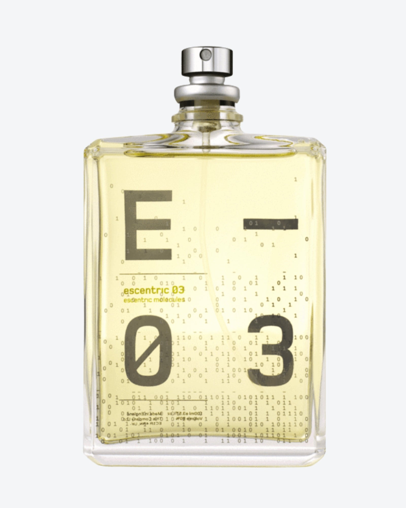 Each pure molecule corresponds to a more complex interpretation in the Escentric line, where the same molecules are enriched with natural ingredients to give life to even more complex creations: Escentric 01 expresses a vibrant energy with lime, iris and pink pepper; Escentric 02 adds iris, vetiver and musk to the abstract amber of Ambroxan, while Escentric 03 blends ginger, green pepper and dry woods in a contemporary and dynamic embrace.