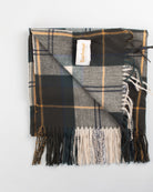 Le dimensioni generose consentono di avvolgere il corpo con naturalezza, mentre le frange sul bordo aggiungono un dettaglio classico e senza tempo. Rifinita con l’iconico badge Barbour, rappresenta l’essenza dello stile heritage del marchio britannico.