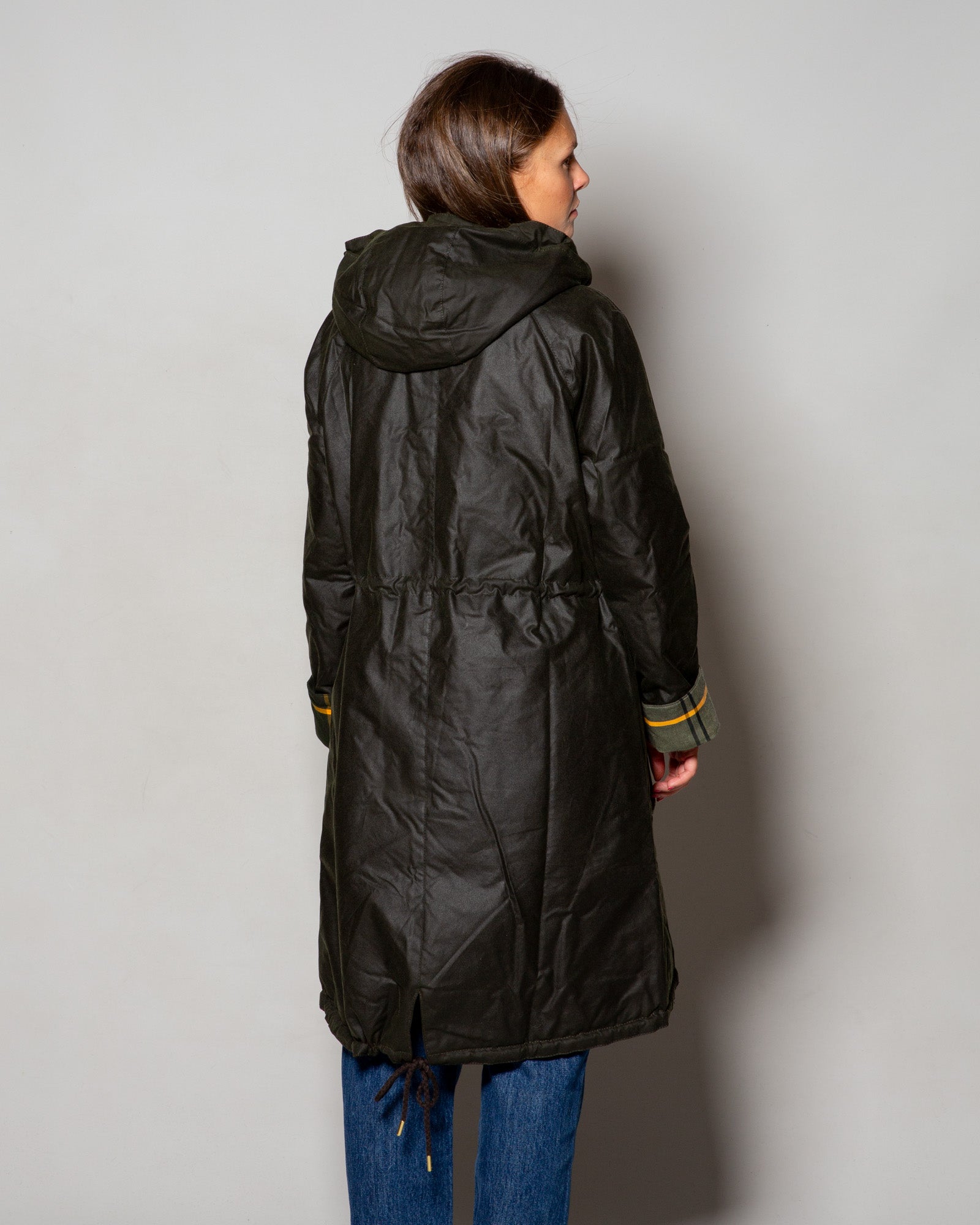 Il parka Barbour Marcy rinnova l’heritage del brand britannico con una versione pensata per affrontare l’inverno con stile e funzionalità. Realizzato in cotone cerato, materiale iconico che garantisce resistenza e protezione dalle intemperie, questo capo unisce l’inconfondibile tradizione Barbour a un design pratico e moderno. La fodera in tartan dona calore e richiama i codici estetici della maison, mentre le ampie tasche e il cappuccio protettivo ne esaltano la vocazione outdoor.